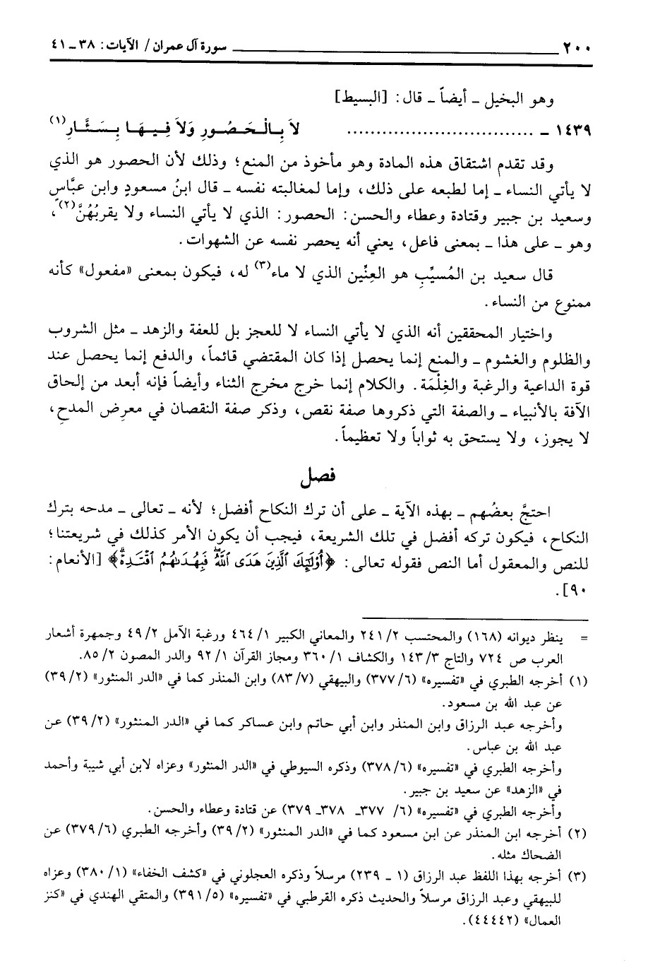 1439 - ... ... ... ... ... ... ... ... ... ..... لاَ بِالْحَصُورِ وَلاَ فِيهَا بِسَئّارِ