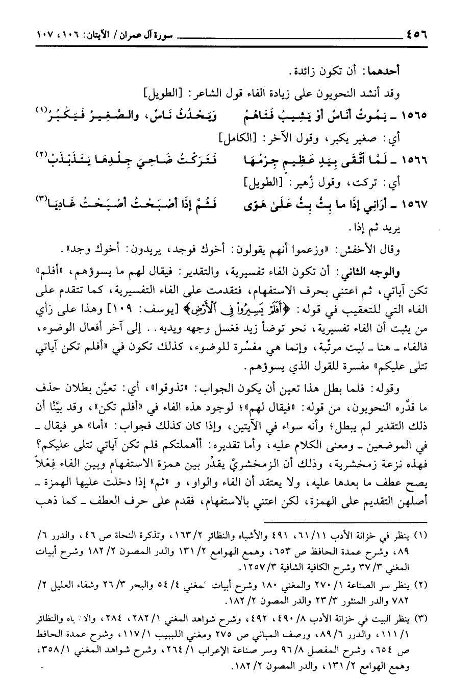وقد أنشد النحويون على زيادة الفاء قول الشاعر: [الطويل]