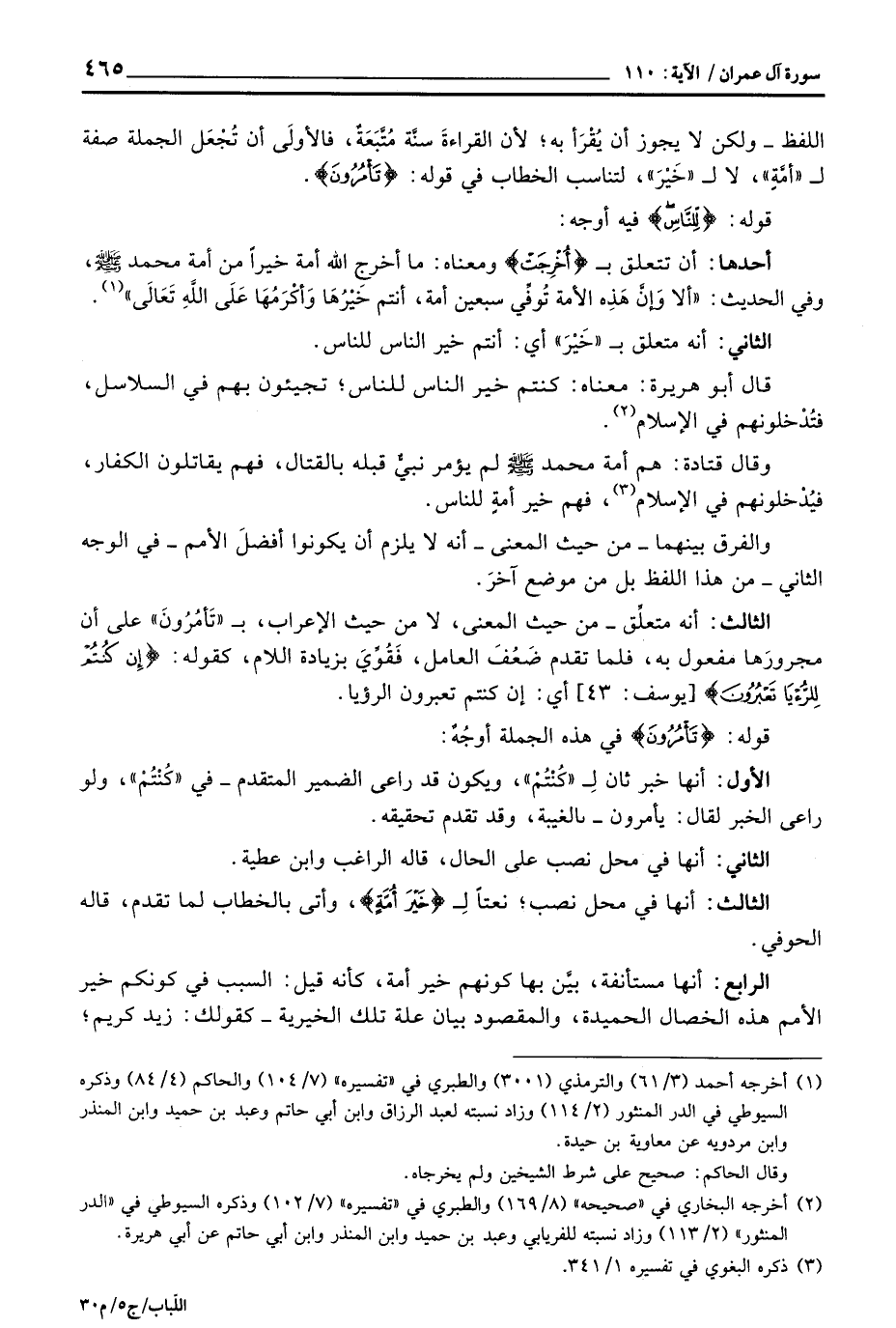 اللفظ - ولكن لا يجوز أن يُقْرأ به؛ لأن القراءةَ سنَّة مُتَّبَعَةٌ، فالأولَى أن تُجْعَل الجملة صفة ل «أمَّةٍ» ، لا ل «خَيْرَ» ن لتناسب الخطاب في قوله: {تَاْمُرُونَ} .