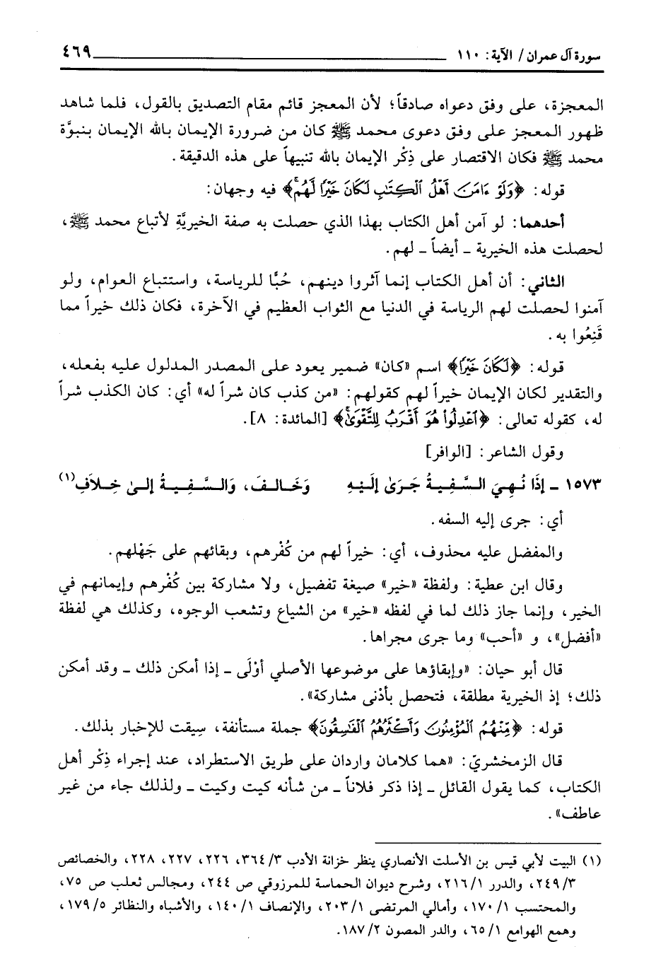 وقال ابن عطية: ولفظة «خير» صيغة تفضيل، ولا مشاركة بين كُفْرهم وإيمانهم في الخير، وإنما جاز ذلك لما في لفظه «خير» من الشياع وتشعب الوجوه، وكذلك هي لفظة «أفضل» ، و «أحب» وما جرى مجراها.