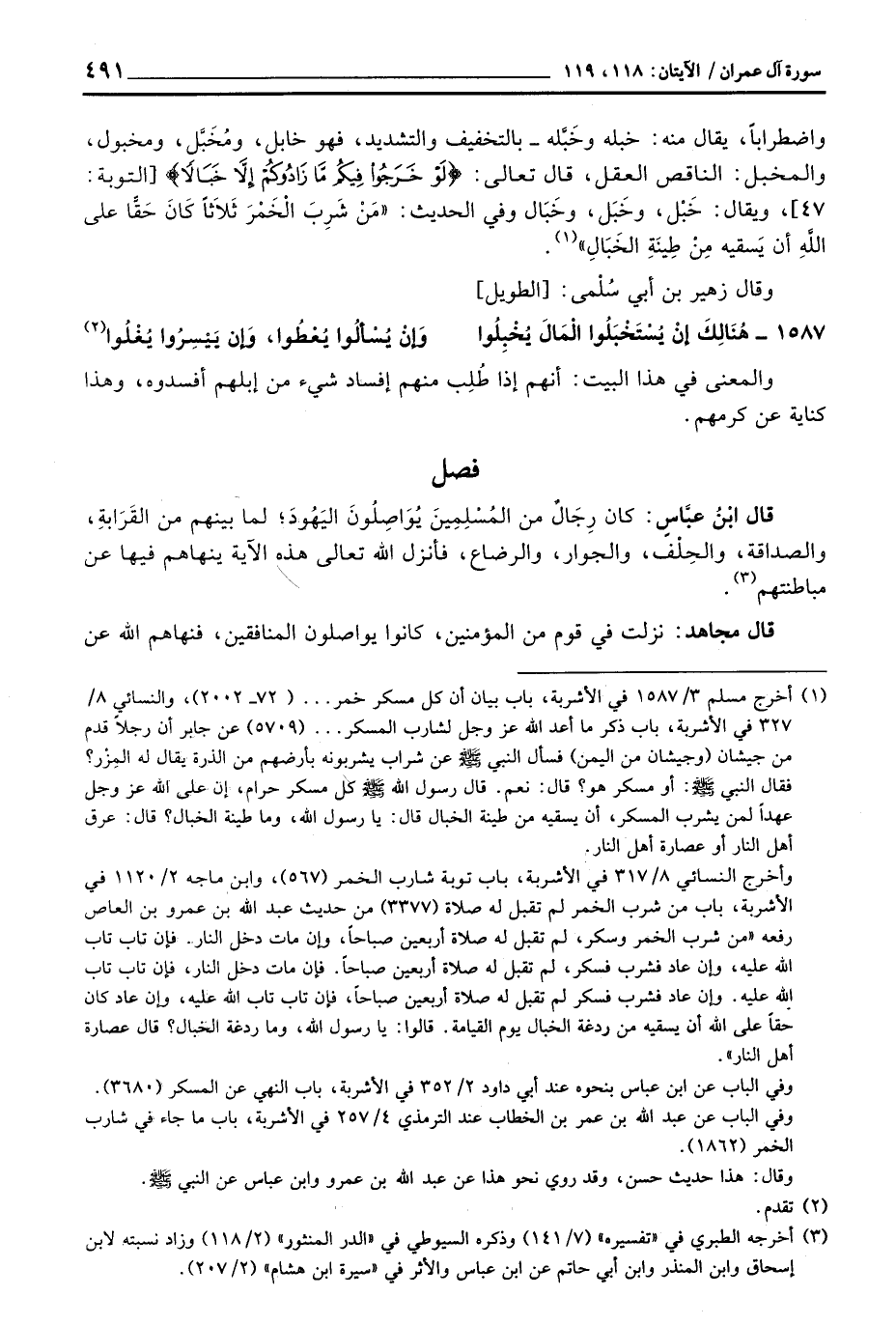 قال ابنُ عبَّاسٍ: كان رِجَالٌ من المُسْلِمِينَ يُوَاصِلُونَ اليَهُودَ؛ لما بينهم من القَرَابةِ، والصداقة، والحِلْف، والجوار، والرضاع، فأنزل الله تعالى هذه الآية ينهاهم فيها عن مباطنتهم.