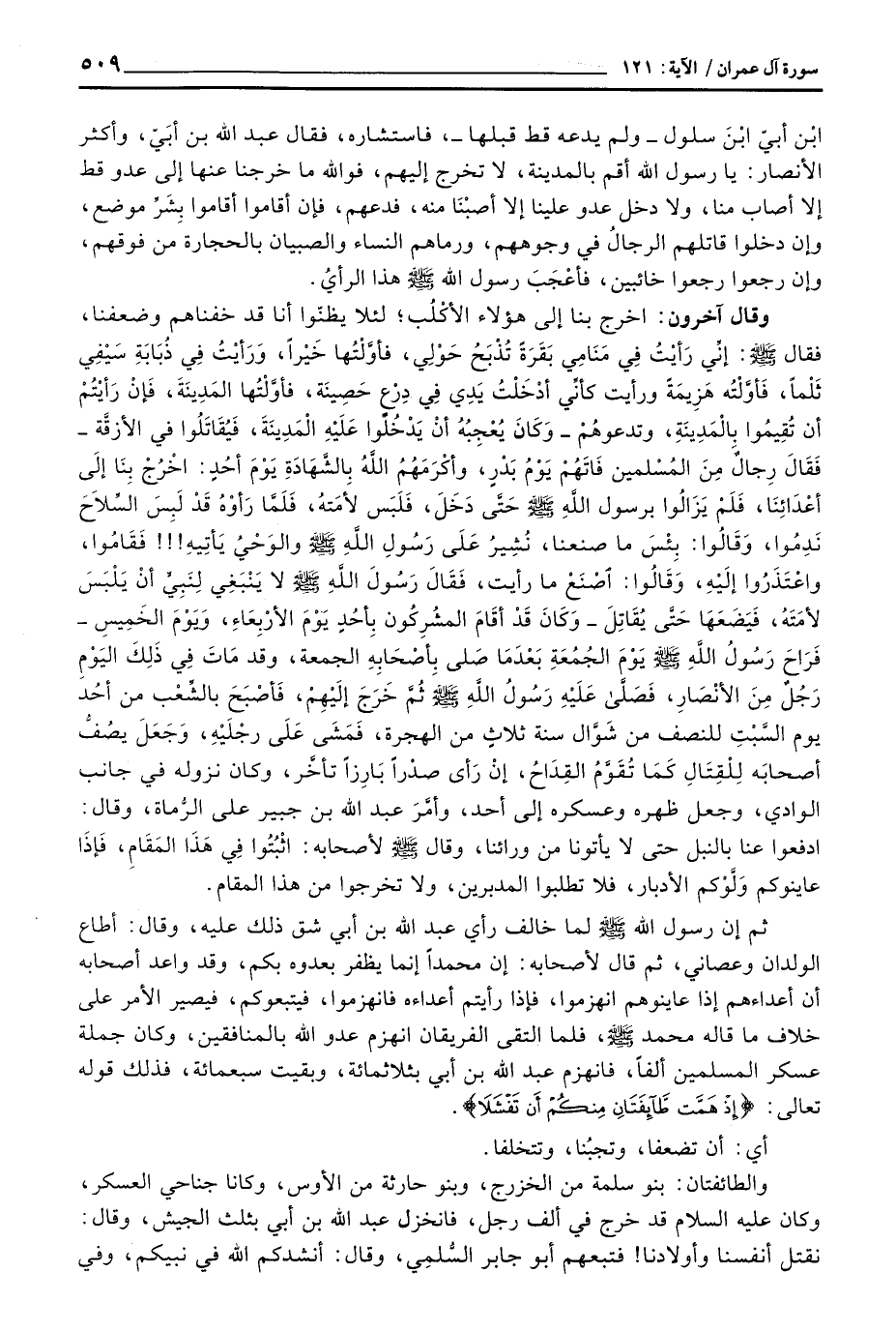 والطائفتان: بنو سلمة من الخزرج، وبنو حارثة من الأوس، وكانا جناحي العسكر، وكان عليه السلام قد خرج في ألف رجل، فانخزل عبد الله بن أبي بثلث الجيش، وقال: نقتل أنفسنا وأولادنا! فتبعهم أبو جابر السُّلمِي، وقال: أنشدكم الله في نبيكم، وفي