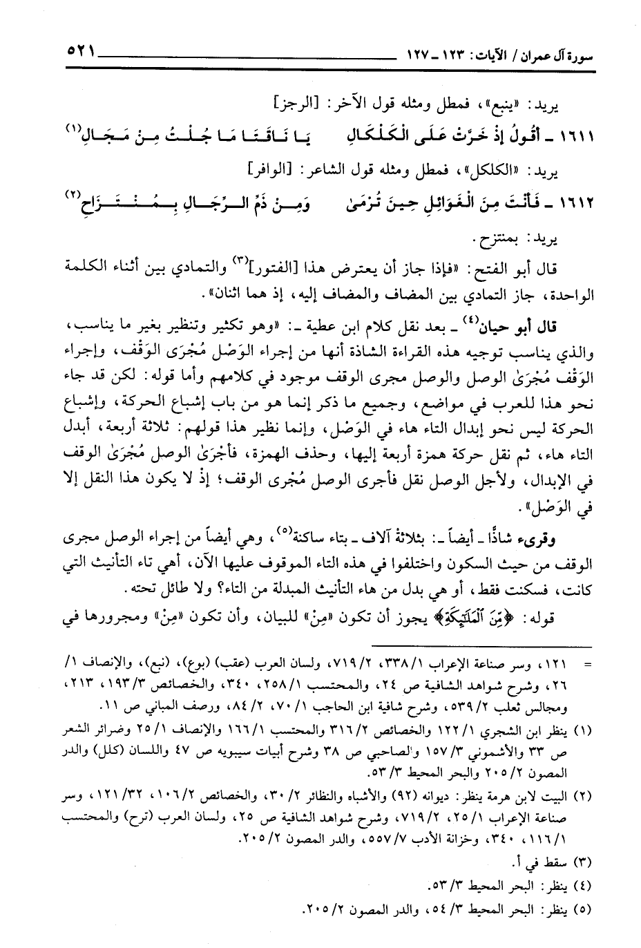 قال أبو حيان - بعد نقل كلام ابن عطية -: «وهو تكثير وتنظير بغير ما يناسب، والذي يناسب توجيه هذه القراءة الشاذة أنها من إجراء الوَصْل مُجْرَى الوَقْف، وإجراء الوَقْف مُجْرَى الوصل والوصل مجرى الوقف موجود في كلامهم وأما قوله: لكن قد جاء نحو هذا للعرب في مواضع، وجميع ما ذكر إنما هو من باب إشباع الحركة، وإشباع الحركة ليس نحو إبدال التاء هاء في الوَصْل، وإنما نظير هذا قولهم: ثلاثة اربعة، أبدل التاء هاء، ثم نقل حركة همزة أربعة إليها، وحذف الهمزة، فأجْرَى الوصل مُجْرَى الوقف في الإبدال، ولأجل الوصل نقل فأجرى الوصل مُجْرى الوقف؛ إذْ لا يكون هذا النقل إلا في الوَصْل» .