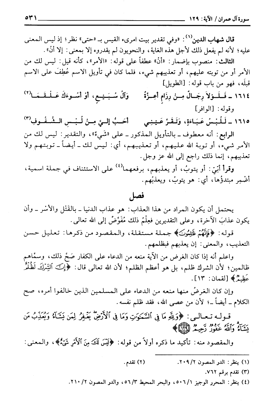 الرابع: أنه معطوف - بالتأويل المذكور - على «شَيءٌ» ، والتقدير: ليس لك من الأمر شيء، أو توبة الله عليهم، أو تعذيبهم، أي: ليس لك - أيضاً - توبتهم ولا تعذيبهم، إنما ذلك راجع إلى الله عَزَّ وَجَلَّ.