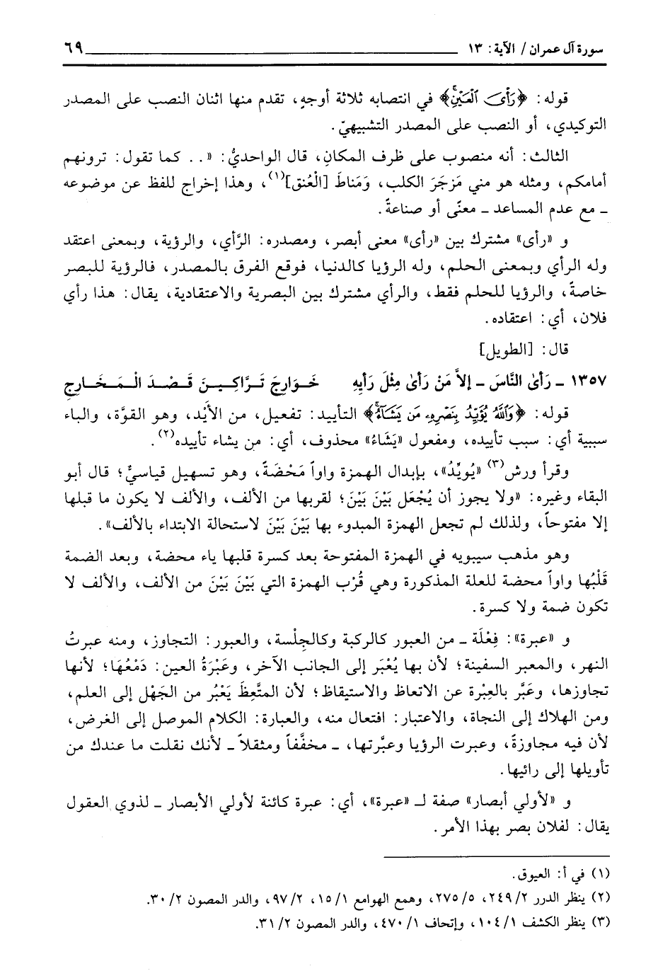 قوله: {رَأْيَ العين} في انتصابه ثلاثة أوجهٍ، تقدم منها اثنان النصب على المصدر التوكيدي، أو النصب على المصدر التشبيهيّ.