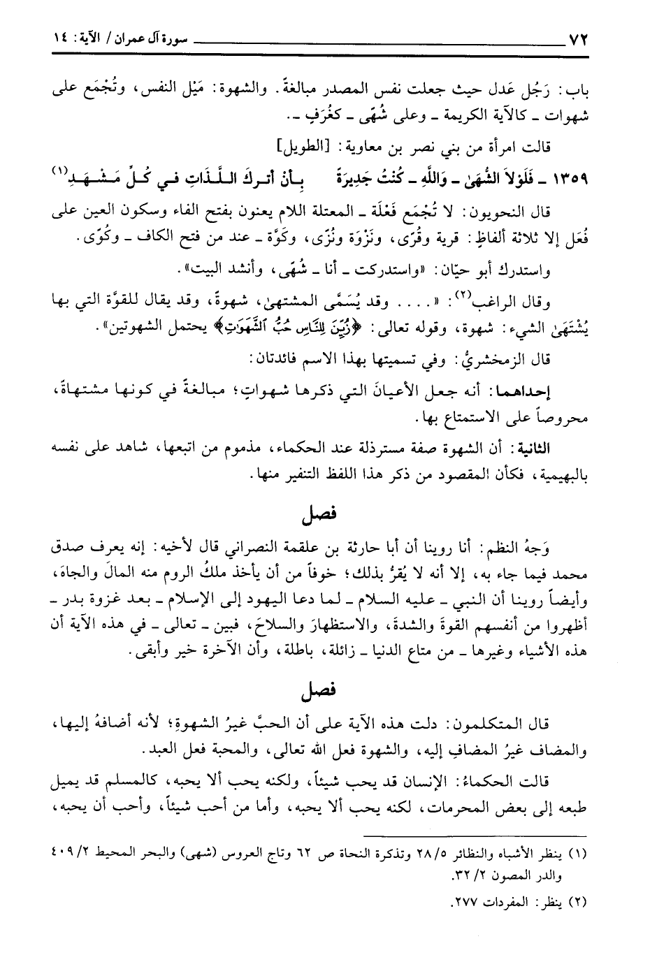 باب: رَجُل عَدل حيث جعلت نفس المصدر مبالغةً. والشهوة: مَيْل النفس، وتُجْمَع على شهوات - كالآية الكريمة - وعلى شُهًى - كغُرَفٍ -.
