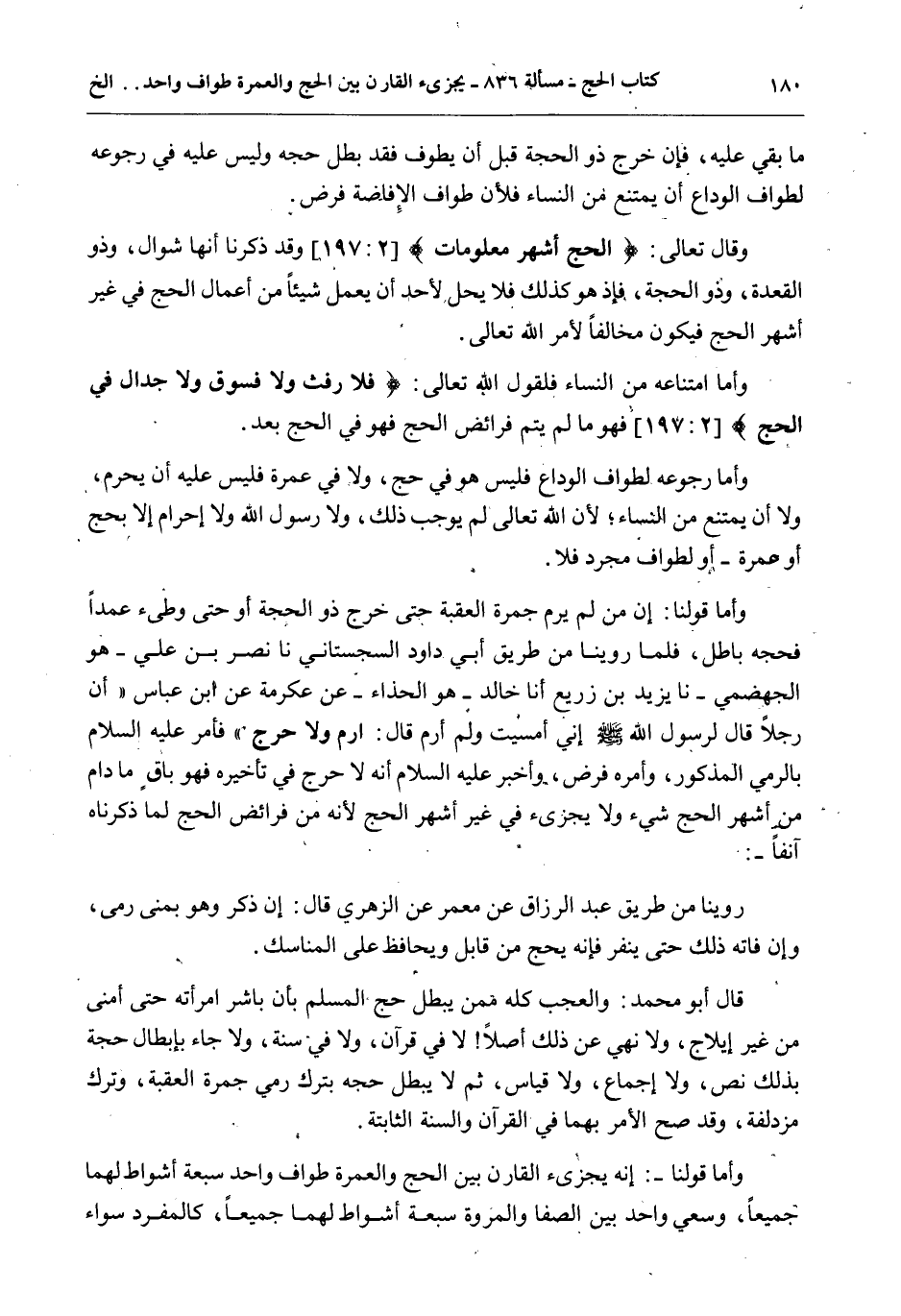 وَقَالَ - تَعَالَى -: {الْحَجُّ أَشْهُرٌ مَعْلُومَاتٌ} [البقرة: 197] وَقَدْ ذَكَرْنَا أَنَّهَا شَوَّالٌ، وَذُو الْقَعْدَةِ، وَذُو الْحِجَّةِ، فَإِذْ هُوَ كَذَلِكَ فَلَا يَحِلُّ لِأَحَدٍ أَنْ يَعْمَلَ شَيْئًا مِنْ أَعْمَالِ الْحَجِّ فِي غَيْرِ أَشْهُرِ الْحَجِّ فَيَكُونَ مُخَالِفًا لِأَمْرِ اللَّهِ - تَعَالَى -.