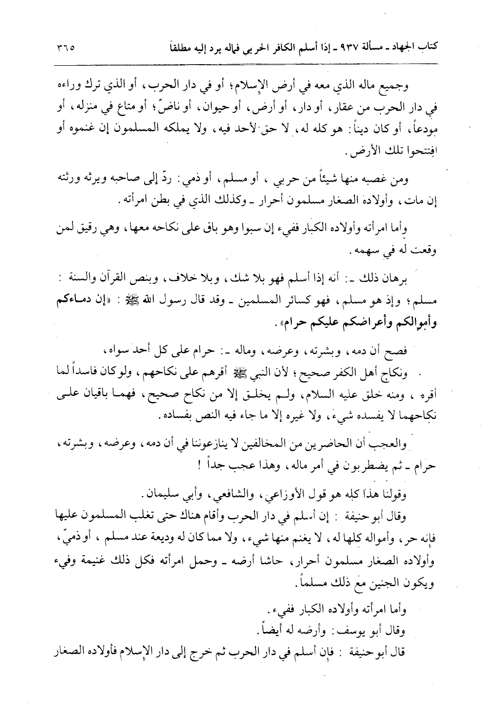 وَالْعَجَبُ أَنَّ الْحَاضِرِينَ مِنْ الْمُخَالِفِينَ لَا يُنَازِعُونَنَا فِي أَنَّ دَمَهُ، وَعِرْضَهُ، وَبَشَرَتَهُ، حَرَامٌ - ثُمَّ يَضْطَرِبُونَ فِي أَمْرِ مَالِهِ، وَهَذَا عَجَبٌ جِدًّا وَقَوْلُنَا هَذَا كُلُّهُ هُوَ قَوْلُ الْأَوْزَاعِيِّ، وَالشَّافِعِيِّ، وَأَبِي سُلَيْمَانَ.