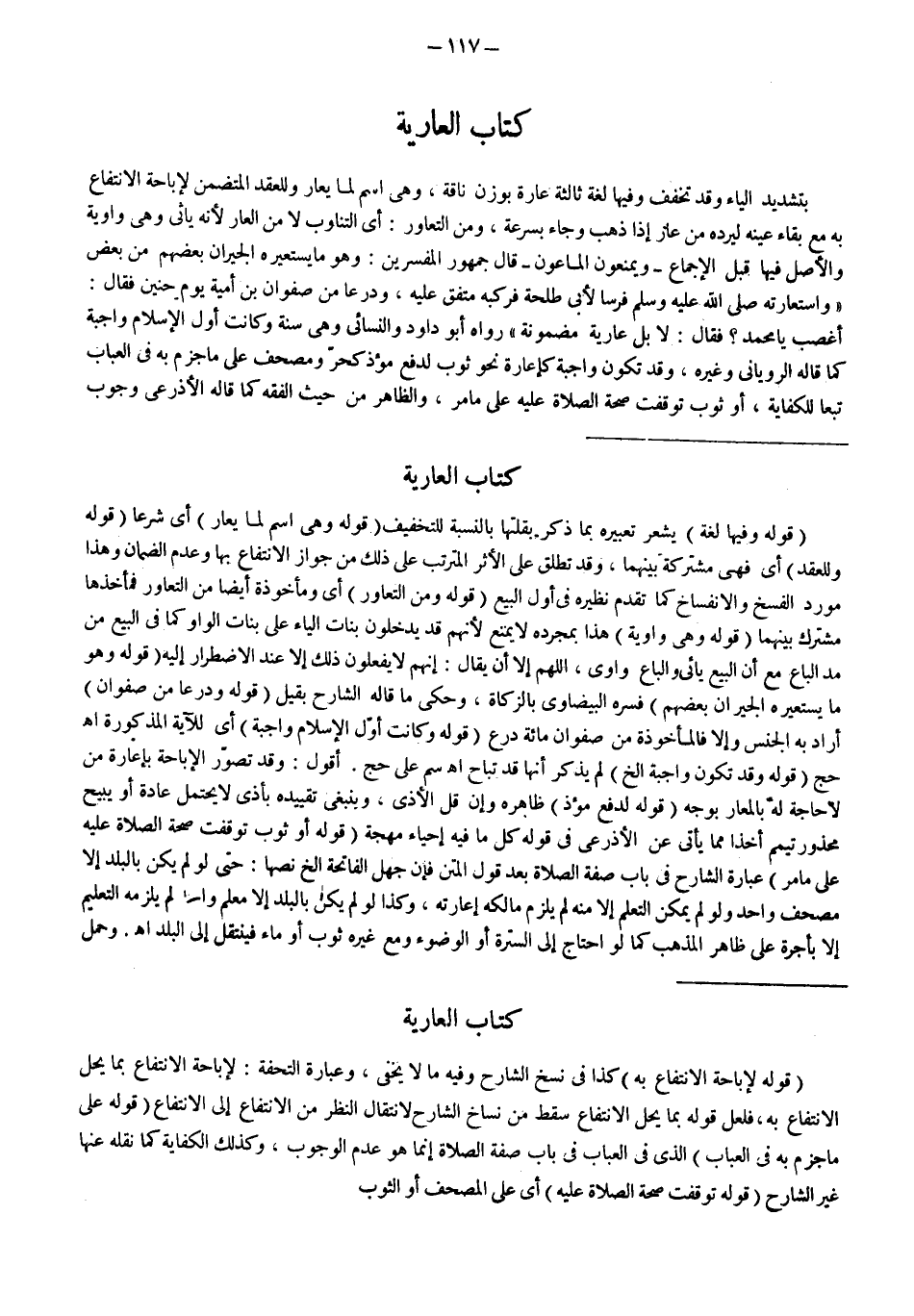 ـــــــــــــــــــــــــــــQكِتَابُ الْعَارِيَّةِ (قَوْلُهُ: لِإِبَاحَةِ الِانْتِفَاعِ بِهِ) كَذَا فِي نُسَخِ الشَّارِحِ وَفِيهِ مَا لَا يَخْفَى، وَعِبَارَةُ التُّحْفَةِ؛ لِإِبَاحَةِ الِانْتِفَاعِ بِمَا يَحِلُّ الِانْتِفَاعُ بِهِ، فَلَعَلَّ قَوْلَهُ بِمَا يَحِلُّ الِانْتِفَاعُ سَقَطَ مِنْ نُسَّاخِ الشَّارِحِ؛ لِانْتِقَالِ النَّظَرِ مِنْ الِانْتِفَاعِ إلَى الِانْتِفَاعِ. (قَوْلُهُ: عَلَى مَا جَزَمَ بِهِ فِي الْعُبَابِ) الَّذِي فِي الْعُبَابِ فِي بَابِ صِفَةِ الصَّلَاةِ إنَّمَا هُوَ عَدَمُ الْوُجُوبِ، وَكَذَلِكَ الْكِفَايَةُ كَمَا نَقَلَهُ عَنْهَا غَيْرُ الشَّارِحِ (قَوْلُهُ: تَوَقَّفَتْ صِحَّةُ الصَّلَاةِ عَلَيْهِ) أَيْ عَلَى الْمُصْحَفِ أَوْ الثَّوْبِ