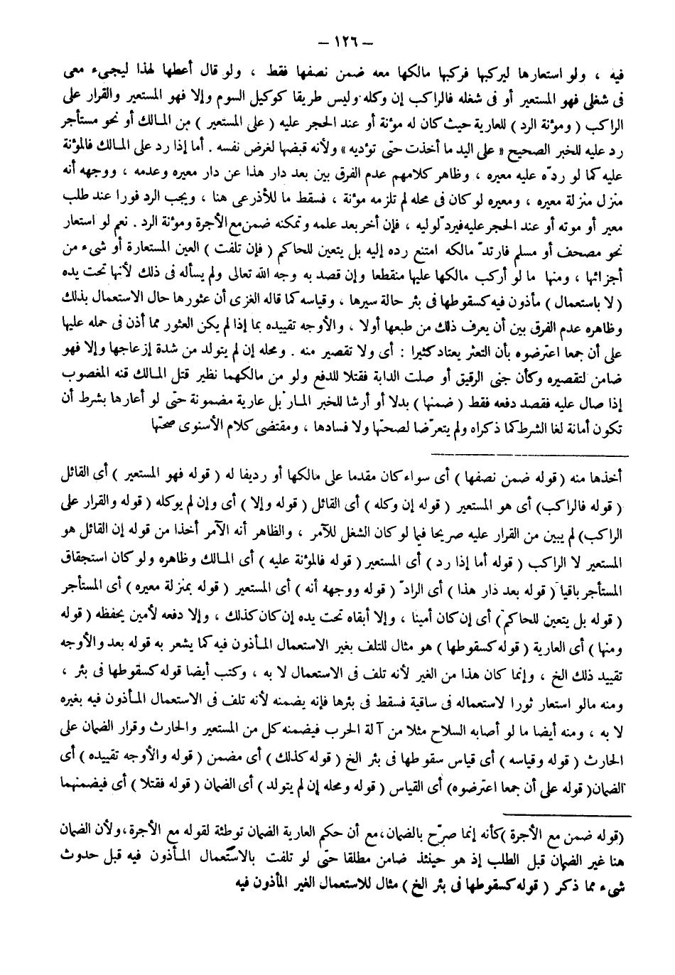 (قَوْلُهُ: وَمِنْهَا) أَيْ الْعَارِيَّةِ (قَوْلُهُ: كَسُقُوطِهَا) هُوَ مِثَالٌ لِلتَّلَفِ بِغَيْرِ الِاسْتِعْمَالِ الْمَأْذُونِ فِيهِ كَمَا يُشْعِرُ بِهِ قَوْلُهُ بَعْدُ وَالْأَوْجَهُ تَقْيِيدُ ذَلِكَ إلَخْ، وَإِنَّمَا كَانَ هَذَا مِنْ الْغَيْرِ لِأَنَّهُ تَلَفٌ فِي اسْتِعْمَالٍ لَا بِهِ، وَكَتَبَ أَيْضًا قَوْلَهُ كَسُقُوطِهَا فِي بِئْرٍ، وَمِنْهُ مَا لَوْ اسْتَعَارَ ثَوْرًا لِاسْتِعْمَالِهِ فِي سَاقِيَةٍ فَسَقَطَ فِي بِئْرِهَا فَإِنَّهُ يَضْمَنُهُ لِأَنَّهُ تَلِفَ فِي الِاسْتِعْمَالِ الْمَأْذُونِ فِيهِ بِغَيْرِهِ لَا بِهِ، وَمِنْهُ أَيْضًا مَا لَوْ أَصَابَهُ السِّلَاحُ مَثَلًا مِنْ آلَةِ الْحَرْبِ فَيَضْمَنُهُ كُلٌّ مِنْ الْمُسْتَعِيرِ وَالْحَارِثِ وَقَرَارُ الضَّمَانِ عَلَى الْحَارِثِ (قَوْلُهُ: وَقِيَاسُهُ) أَيْ قِيَاسُ سُقُوطِهَا فِي بِئْرٍ إلَخْ (قَوْلُهُ: كَذَلِكَ) أَيْ مُضَمَّنُ (قَوْلُهُ: وَالْأَوْجَهُ تَقْيِيدُهُ) أَيْ الضَّمَانِ (قَوْلُهُ: عَلَى أَنَّ جَمْعًا اعْتَرَضُوهُ) أَيْ الْقِيَاسَ (قَوْلُهُ وَمَحَلُّهُ إنْ لَمْ يَتَوَلَّدْ) أَيْ الضَّمَانُ (قَوْلُهُ: فَقُتِلَا) أَيْ فَيَضْمَنُهُمَا