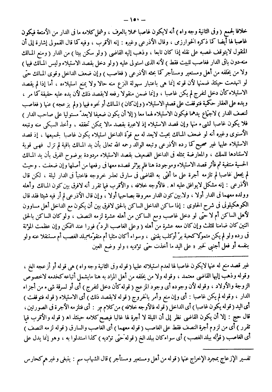 ـــــــــــــــــــــــــــــSغَيْرِ قَصْدِ مَنْعٍ لَهُ عَنْهَا لَا يَكُونُ غَاصِبًا لَهَا لِعَدَمِ اسْتِيلَائِهِ عَلَيْهَا (قَوْلُهُ: وَفِي الثَّانِيَةِ وَجْهٌ وَاهٍ) هِيَ قَوْلُهُ أَوْ أَزْعَجَهُ إلَخْ، وَقَوْلُهُ وَذَهَبَ إلَيْهَا الْقَاضِي مُعْتَمَدٌ، وَقَوْلُهُ وَلَا مَنْ يَخْلُفُهُ مِنْ أَهْلٍ الْمُرَادُ بِهِ هُنَا مَا يَشْمَلُ أَتْبَاعَهُ كَخَدَمِهِ لَا خُصُوصَ الزَّوْجَةِ وَالْأَوْلَادِ، وَقَوْلُهُ لِأَنَّ وُجُودَهُ أَيْ وُجُودَ الْمُزْعِجِ.