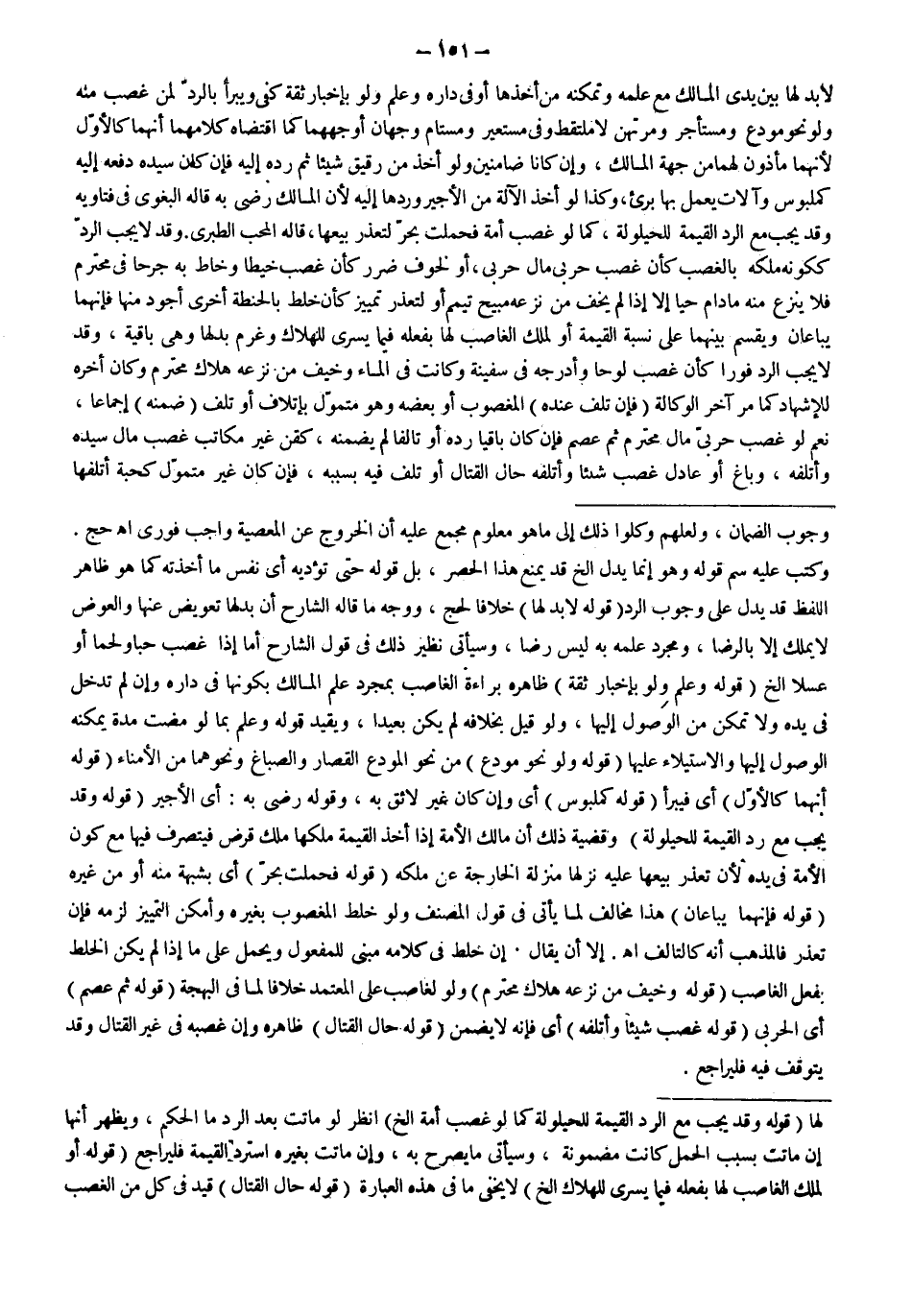 ـــــــــــــــــــــــــــــSوُجُوبُ الضَّمَانِ، وَلَعَلَّهُمْ وَكَّلُوا ذَلِكَ إلَى مَا هُوَ مَعْلُومٌ مُجْمَعٌ عَلَيْهِ أَنَّ الْخُرُوجَ عَنْ الْمَعْصِيَةِ وَاجِبٌ فَوْرِيٌّ اهـ حَجّ.
