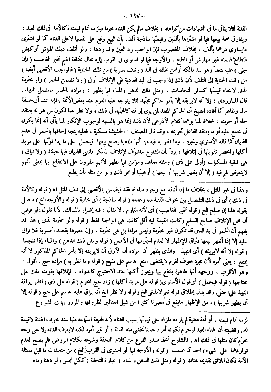 ـــــــــــــــــــــــــــــQلَزِمَهُ تَمَامُ قِيمَتِهِ، أَوْ أَمَةٌ مُغَنِّيَةٌ لَمْ يَلْزَمْهُ مَا زَادَ عَلَى قِيمَتِهَا بِسَبَبِ الْغِنَاءِ؛ لِأَنَّهُ لِحُرْمَةِ اسْتِمَاعِهِ مِنْهَا عِنْدَ خَوْفِ الْفِتْنَةِ لَا قِيمَةَ لَهُ. وَقَضِيَّتُهُ أَنَّ غِنَاءَ الْعَبْدِ لَوْ حَرُمَ لِكَوْنِهِ أَمْرَدَ حَسَنًا تُخْشَى مِنْهُ الْفِتْنَةُ، أَوْ غَيْرَ أَمْرَدَ لَكِنَّهُ لَا يَعْرِفُ الْغِنَاءَ إلَّا عَلَى وَجْهٍ مُحَرَّمٍ كَانَ مِثْلَهَا فِي ذَلِكَ اهـ. فَالشَّارِحُ أَخَذَ صَدْرَ الْفَرْعِ مِنْ كَلَامِ التُّحْفَةِ وَشَرَحَهُ بِكَلَامِ الرَّوْضِ فَلَمْ يَصِحَّ؛ لِعَدَمِ تَوَارُدِهِمَا عَلَى شَيْءٍ وَاحِدٍ كَمَا عَلِمْتَ. (قَوْلُهُ: وَالْأَوْجَهُ فِيمَا لَوْ اسْتَوَى فِي الْقُرْبِ إلَخْ) مِنْ مُتَعَلِّقَاتِ مَا قَبْلَ مَسْأَلَةِ الْأَمَةِ فَكَانَ اللَّائِقُ تَقْدِيمَهُ هُنَاكَ