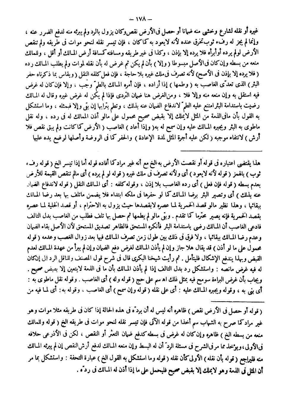ـــــــــــــــــــــــــــــQ (قَوْلُهُ: أَوْ حَصَلَ فِي الْأَرْضِ نَقْصٌ) ظَاهِرُهُ أَنَّهُ لَيْسَ لَهُ أَنْ يَرُدَّهُ فِي هَذِهِ الْحَالَةِ؛ إذَا كَانَ فِي طَرِيقِهِ مَثَلًا مَوَاتٌ وَهُوَ غَيْرُ مُرَادٍ كَمَا صَرَّحَ بِهِ الشِّهَابُ سم أَخْذًا مِنْ قَوْلِهِ الْآتِي فَإِنْ تَيَسَّرَ نَقْلُهُ لِنَحْوِ مَوَاتٍ فِي طَرِيقِهِ إلَخْ. (قَوْلُهُ: وَلِلْمَالِكِ مَنْعُهُ مِنْ بَسْطِهِ إلَخْ) ظَاهِرُهُ وَإِنْ كَانَ لَهُ غَرَضٌ فِي بَسْطِهِ كَدَفْعِ ضَمَانِ التَّعَثُّرِ أَوْ النَّقْصِ، لَكِنْ فِي الْأَذْرَعِيِّ خِلَافُهُ فِي الْأُولَى، وَيُؤْخَذُ مِمَّا مَرَّ فِي الشَّرْحِ فِي مَسْأَلَةِ الرَّدِّ أَنَّ لَهُ الْبَسْطَ وَإِنْ مَنَعَهُ الْمَالِكُ لِدَفْعِ أَرْشِ النَّقْصِ إنْ لَمْ يُبْرِئْهُ الْمَالِكُ مِنْهُ فَلْيُرَاجَعْ. (قَوْلُهُ: بِأَنْ نَقَلَهُ) الْأَوْلَى كَأَنْ نَقَلَهُ. (قَوْلُهُ: وَمَا اسْتَشْكَلَ بِهِ الْقَوْلَ إلَخْ) عِبَارَةُ التُّحْفَةِ: وَاسْتَشْكَلَ بِمَا مَرَّ أَنَّ الْمِثْلَ فِي الذِّمَّةِ وَهُوَ لَا يُمْلَكُ إلَّا بِقَبْضٍ صَحِيحٍ فَلْيُحْمَلْ عَلَى مَا إذَا أَذِنَ لَهُ الْمَالِكُ فِي رَدِّهِ.