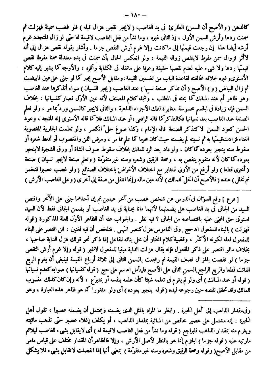 ـــــــــــــــــــــــــــــQوَفِي مِقْدَارِ الذَّاهِبِ إلَى أَهْلِ الْخِبْرَةِ. وَانْظُرْ مَا الْمُرَادُ بِالْمِثْلِ الَّذِي يَضْمَنُهُ وَيُحْتَمَلُ أَنْ يَضْمَنَهُ عَصِيرًا، تَقُولُ أَهْلُ الْخِبْرَةِ: إنَّهُ مُشْتَمِلٌ عَلَى عَصِيرٍ خَالِصٍ مِنْ الْمَائِيَّةِ بِمِقْدَارِ الذَّاهِبِ، أَوْ يُكَلَّفُ إغْلَاءَ عَصِيرٍ حَتَّى تَذْهَبَ مَائِيَّتُهُ وَيَغْرَمُ مِنْهُ بِمِقْدَارِ الذَّاهِبِ فَلْيُرَاجَعْ.