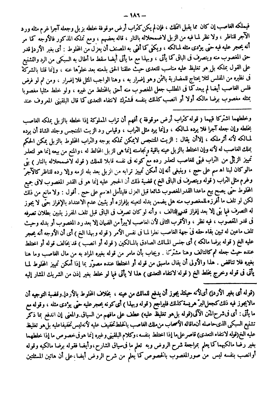 وَالْمَعْنَى إنْ انْدَفَعَ بِمَا ذُكِرَ تَشْنِيعُ السُّبْكِيّ الَّذِي حَاصِلُهُ أَنَّ مَا قَالَهُ الْأَصْحَابُ مِنْ مِلْكِ الْغَاصِبِ بِالْخَلْطِ تَخْفِيفٌ عَلَيْهِ؛ لِأَنَّهُ لَيْسَ تَخْفِيفًا عَلَيْهِ بَلْ هُوَ تَغْلِيظٌ عَلَيْهِ إلَخْ. (قَوْلُهُ:؛ لِانْتِفَاءِ التَّعَدِّي) قَاصِرٌ عَلَى مَا إذَا اخْتَلَطَ بِنَفْسِهِ، وَكَلَامُ الْبُلْقِينِيِّ وَغَيْرِهِ إنَّمَا هُوَ فِي خُصُوصِ مَا إذَا خَلَطَهُمَا بِغَيْرِ رِضَا مَالِكَيْهِمَا كَمَا يُعْلَمُ بِمُرَاجَعَةِ شَرْحِ الرَّوْضِ وَبِهِ تَعْلَمُ مَا فِي سِيَاقِ الشَّارِحِ، وَأَيْضًا فَقَوْلُهُ: بِرِضَا مَالِكِيهِ وَقَوْلُهُ: أَوْ انْصَبَّ بِنَفْسِهِ لَيْسَ مِنْ صُوَرِ الْمَغْصُوبِ بِالْخُصُوصِ كَمَا يُعْلَمُ مِنْ شَرْحِ الرَّوْضِ أَيْضًا عَلَى أَنَّ هَاتَيْنِ الْمَسْأَلَتَيْنِ