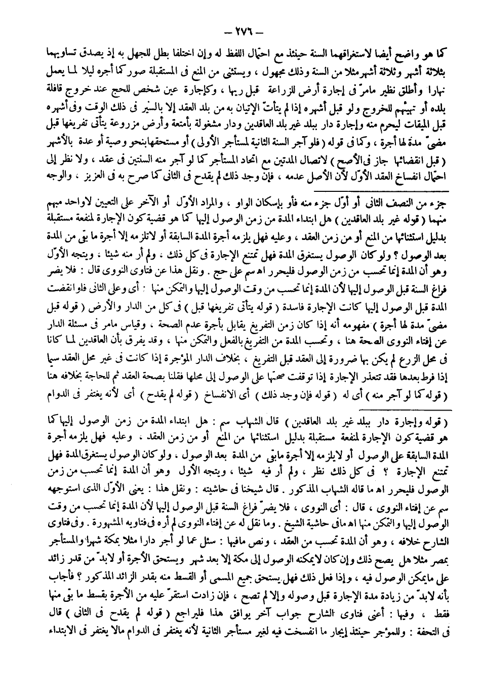 ـــــــــــــــــــــــــــــSجُزْءٍ مِنْ النِّصْفِ الثَّانِي أَوْ أَوَّلِ جُزْءٍ مِنْهُ فَأَوْ بِإِسْكَانِ الْوَاوِ، وَالْمُرَادُ الْأَوَّلُ أَوْ الْآخِرُ عَلَى التَّعْيِينِ لَا وَاحِدَ مُبْهَمٌ مِنْهُمَا (قَوْلُهُ: غَيْرِ بَلَدِ الْعَاقِدَيْنِ) هَلْ ابْتِدَاءُ الْمُدَّةِ مِنْ زَمَنِ الْوُصُولِ إلَيْهَا كَمَا هُوَ قَضِيَّةُ كَوْنِ الْإِجَارَةِ لِمَنْفَعَةِ مُسْتَقْبَلَةٍ بِدَلِيلِ اسْتِثْنَائِهَا مِنْ الْمَنْعِ أَوْ مِنْ زَمَنِ الْعَقْدِ، وَعَلَيْهِ فَهَلْ يَلْزَمُهُ أُجْرَةُ الْمُدَّةِ السَّابِقَةِ أَوْ لَا تَلْزَمُهُ إلَّا أُجْرَةُ مَا بَقِيَ مِنْ الْمُدَّةِ بَعْدَ الْوُصُولِ؟ وَلَوْ كَانَ الْوُصُولُ يَسْتَغْرِقُ الْمُدَّةَ فَهَلْ تُمْتَنَعُ الْإِجَارَةُ فِي كُلِّ ذَلِكَ، وَلَمْ أَرَ مِنْهُ شَيْئًا، وَيُتَّجَهُ الْأَوَّلُ وَهُوَ أَنَّ الْمُدَّةَ إنَّمَا تُحْسَبُ مِنْ زَمَنِ الْوُصُولِ فَلْيُحَرَّرْ اهـ حَجّ. وَنُقِلَ هَذَا عَنْ فَتَاوَى النَّوَوِيِّ قَالَ: فَلَا يَضُرُّ فَرَاغُ السَّنَةِ قَبْلَ الْوُصُولِ إلَيْهَا لِأَنَّ الْمُدَّةَ إنَّمَا تُحْسَبُ مِنْ وَقْتِ الْوُصُولِ إلَيْهَا وَالتَّمَكُّنِ مِنْهَا: أَيْ وَعَلَى الثَّانِي فَلَوْ انْقَضَتْ الْمُدَّةُ قَبْلَ الْوُصُولِ إلَيْهَا كَانَتْ الْإِجَارَةُ فَاسِدَةً (قَوْلُهُ: يَتَأَتَّى تَفْرِيغُهَا قَبْلَ) فِي كُلٍّ مِنْ الدَّارِ وَالْأَرْضِ (قَوْلُهُ: قَبْلَ مُضِيِّ مُدَّةٍ لَهَا أُجْرَةٌ) مَفْهُومُهُ أَنَّهُ إذَا كَانَ زَمَنُ التَّفْرِيغِ يُقَابَلُ بِأُجْرَةِ عَدَمِ الصِّحَّةِ، وَقِيَاسُ مَا مَرَّ فِي مَسْأَلَةِ الدَّارِ عَنْ إفْتَاءِ النَّوَوِيِّ الصِّحَّةُ هُنَا، وَتُحْسَبُ الْمُدَّةُ مِنْ التَّفْرِيغِ بِالْفِعْلِ وَالتَّمَكُّنِ مِنْهَا، وَقَدْ يُفَرَّقُ بِأَنَّ الْعَاقِدَيْنِ لَمَّا كَانَا فِي مَحَلِّ الزَّرْعِ لَمْ يَكُنْ بِهَا ضَرُورَةٌ إلَى الْعَقْدِ قَبْلَ التَّفْرِيغِ، بِخِلَافِ الدَّارِ الْمُؤَجَّرَةِ إذَا كَانَتْ فِي غَيْرِ مَحَلِّ الْعَقْدِ سِيَّمَا إذَا فَرَّطَ بَعْدَهَا فَقَدْ تَتَعَذَّرُ الْإِجَارَةُ إذَا تَوَقَّفَتْ صِحَّتُهَا عَلَى الْوُصُولِ إلَى مَحَلِّهَا فَقُلْنَا بِصِحَّةِ الْعَقْدِ ثُمَّ لِلْحَاجَةِ بِخِلَافِهِ هُنَا (قَوْلُهُ: كَمَا لَوْ آجَرَ مِنْهُ) أَيْ لَهُ (قَوْلُهُ: فَإِنْ وَجَدَ ذَلِكَ) أَيْ الِانْفِسَاخَ (قَوْلُهُ: لَمْ يَقْدَحْ) أَيْ لِأَنَّهُ يُغْتَفَرُ فِي الدَّوَام
