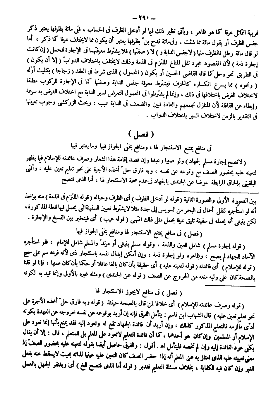 (فَصْلٌ) فِي مَنَافِعَ يَمْتَنِعُ الِاسْتِئْجَارُ لَهَا، وَمَنَافِعَ يَخْفَى الْجَوَازُ فِيهَا وَمَا يُعْتَبَرُ فِيهَا.