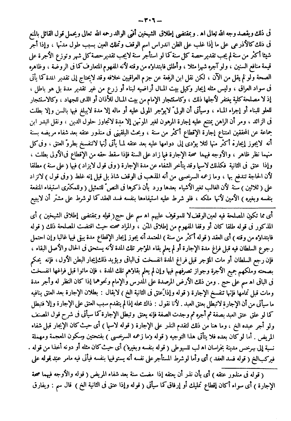 ـــــــــــــــــــــــــــــSأَيْ مِمَّا تَكُونُ الْمَصْلَحَةُ فِيهِ لِعَيْنِ الْوَقْفِ لَا لِلْمَوْقُوفِ عَلَيْهِمْ اهـ سم عَلَى حَجّ (قَوْلُهُ: وَبِمُقْتَضَى إطْلَاقِ الشَّيْخَيْنِ) أَيْ الْمَذْكُورُ فِي قَوْلِهِ طَلْقًا كَانَ أَوْ وَقْفًا الْمَفْهُومُ مِنْ إطْلَاقِ الْمَتْنِ، وَالْمُرَادُ صِحَّتُهُ حَيْثُ اقْتَضَتْ الْمَصْلَحَةُ ذَلِكَ (قَوْلُهُ: فَابْتِدَاؤُهُ مِنْ وَقْتِهِ) أَيْ الْعَقْدِ (قَوْلُهُ: أَكْثَرَ مِنْ سَنَةٍ) الْمُعْتَمَدُ أَنَّهُ يَجُوزُ إيجَارُ الْإِقْطَاعِ مُدَّةً يَبْقَى فِيهَا غَالِبًا وَإِنْ احْتَمَلَ رُجُوعَ السُّلْطَانِ فِيهِ قَبْلَ فَرَاغِ مُدَّةِ الْإِجَارَةِ أَوْ لَمْ يَعْلَمْ بَقَاءَ الْمُؤَجَّرِ تِلْكَ الْمُدَّةَ لِأَنَّهُ يُسْتَحَقُّ فِي الْحَالِ وَالْأَصْلُ الْبَقَاءُ، فَإِنْ رَجَعَ السُّلْطَانُ أَوْ مَاتَ الْمُؤَجِّرُ قَبْلَ فَرَاغِ الْمُدَّةِ انْفَسَخَتْ فِي الْبَاقِي وَيُؤَيِّدُ ذَلِكَ إيجَارُ الْبَطْنِ الْأَوَّلُ، فَإِنَّهُ يُحْكَمُ بِصِحَّتِهِ وَمِلْكِهِمْ جَمِيعَ الْأُجْرَةِ وَجَوَازِ تَصَرُّفِهِمْ فِيهَا وَإِنْ لَمْ يُعْلَمْ بَقَاؤُهُمْ تِلْكَ الْمُدَّةَ، فَإِنْ مَاتُوا قَبْلَ فَرَاغِهَا انْفَسَخَتْ فِي الْبَاقِي اهـ سم عَلَى حَجّ. وَمِنْ ذَلِكَ الْأَرْضُ الْمُرْصَدَةُ عَلَى الْمُدَرِّسِ وَالْإِمَامِ وَنَحْوِهِمَا إذَا كَانَ النَّظَرُ لَهُ وَأَجَّرَ مُدَّةً وَمَاتَ قَبْلَ تَمَامِهَا فَإِنَّهَا تَنْفَسِخُ الْإِجَارَةُ (قَوْلُهُ وَإِذَا عَتَقَ فِي الثَّانِيَةِ إلَخْ) لَا يُقَالُ: بُطْلَانُ الْإِجَارَةِ بَعْدَ الْعِتْقِ يُنَافِيهِ مَا سَيَأْتِي مِنْ أَنَّ الْإِجَارَةَ لَا تَبْطُلُ بِعِتْقِ الْعَبْدِ. لِأَنَّا نَقُولُ: ذَاكَ مَحَلُّهُ إذَا لَمْ يَتَقَدَّمْ سَبَبُ الْعِتْقِ عَلَى الْإِجَارَةِ وَإِلَّا فَتَبْطُلُ كَمَا لَوْ عَلَّقَ عِتْقَ الْعَبْدِ بِصِفَةٍ ثُمَّ أَجَّرَهُ ثُمَّ وُجِدَتْ الصِّفَةُ فَإِنَّهُ يَعْتِقُ وَتَبْطُلُ الْإِجَارَةُ كَمَا سَيَأْتِي فِي شَرْحِ قَوْلِ الْمُصَنِّفِ وَلَوْ أَجَّرَ عَبْدَهُ إلَخْ، وَمَا هُنَا مِنْ ذَلِكَ لِتَقَدُّمِ النَّذْرِ عَلَى الْإِجَارَةِ (قَوْلُهُ: لَا سِيَّمَا) أَيْ حَيْثُ كَانَ الْإِيجَارُ قَبْلَ شِفَاءِ الْمَرِيضِ. أَمَّا لَوْ كَانَ بَعْدَهُ فَلَا يَتَأَتَّى هَذَا التَّوْجِيهُ (قَوْلُهُ: وَمَا زَعَمَهُ السَّرَخْسِيُّ) بِفَتْحَتَيْنِ وَسُكُونِ الْمُعْجَمَةِ وَمُهْمَلَةٍ نِسْبَةٌ إلَى سَرْخَسَ مَدِينَةٍ بِخُرَاسَانَ اهـ لب لِلسُّيُوطِيِّ