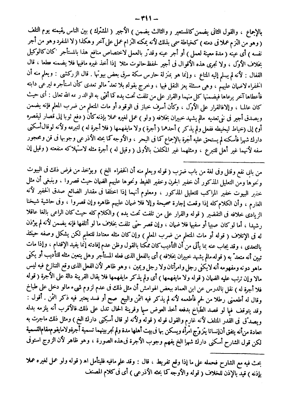 ـــــــــــــــــــــــــــــQبَحَثَ فِيهِ مَعَ الشَّارِحِ فَحَمَلَهُ عَلَى مَا إذَا وَقَعَ تَفْرِيطٌ، قَالَ: وَقَدْ عُلِمَ مَا فِيهِ فَلْيُتَأَمَّلْ اهـ.