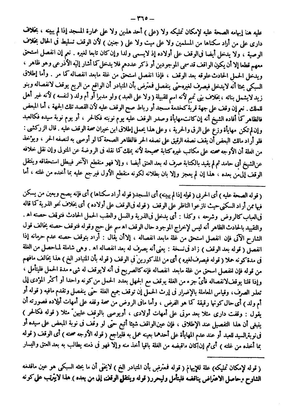 وَهِيَ شَامِلَةٌ لِمَا حَصَلَ مِنْ الْغَلَّةِ فِي مُدَّةِ كَوْنِهِ حَمْلًا (قَوْلُهُ: فَيُصْرَفُ لِغَيْرِهِ) أَيْ مِنْ الْمَذْكُورِينَ فِي الْوَقْفِ (قَوْلُهُ: بِأَنَّ الْمُتَبَادِرَ إلَخْ) هَذَا يُخَالِفُ مَا فُهِمَ مِنْ قَوْلِهِ فَإِنْ انْفَصَلَ اسْتَحَقَّ مِنْ غَلَّةِ مَا بَعْدَ انْفِصَالِهِ فَإِنَّهُ كَالصَّرِيحِ فِي أَنَّهُ لَا يُوقَفُ لَهُ شَيْءٌ مُدَّةَ الْحَمْلِ فَلْيُتَأَمَّلْ، وَإِذَا قُلْنَا يُوقَفُ لِانْفِصَالِهِ فَأَيُّ جُزْءٍ مِنْ الْغَلَّةِ يُوقَفُ مَعَ الْجَهْلِ بِعَدَدِ الْحَمْلِ مِنْ كَوْنِهِ وَاحِدًا أَوْ أَكْثَرَ الْمُؤَدِّي إلَى تَعَذُّرِ الصَّرْفِ، وَقِيَاسُ الْمُعَامَلَةِ بِالْإِضْرَارِ فِي إرْثِ الْحَمْلِ أَنْ تُوقَفَ جَمِيعُ الْغَلَّةِ حَتَّى يَنْفَصِلَ وَتُقَدَّمَ مَا فِيهِ (قَوْلُهُ: أَوْ أُمَّ وَلَدٍ) أَيْ حَالَ كَوْنِهَا رَقِيقَةً كَمَا هُوَ الْفَرْضُ، وَأَمَّا مَا فِي الرَّوْضِ مِنْ صِحَّةِ وَقْفِهِ عَلَى أُمَّهَاتِ أَوْلَادِهِ فَصُورَتُهُ أَنْ يَقُولَ: وَقَفْت دَارِي مَثَلًا بَعْدَ مَوْتِي عَلَى أُمَّهَاتِ أَوْلَادِي، أَوْ يُوصِي بِالْوَقْفِ عَلَيْهِنَّ مَثَلًا (قَوْلُهُ: فَكَالْحُرِّ) يَنْبَغِي أَنَّ هَذَا التَّفْصِيلَ عِنْدَ الْإِطْلَاقِ، فَإِنْ عَيَّنَ الْوَاقِفُ شَيْئًا أُتْبِعَ حَتَّى لَوْ وَقَفَ فِي نَوْبَةِ الْمُبَعَّضِ عَلَى سَيِّدِهِ أَوْ فِي نَوْبَةِ السَّيِّدِ لِلْعَبْدِ أَوْ عِنْدَ عَدَمِ الْمُهَايَأَةِ عَلَى أَحَدِهِمَا بِعَيْنِهِ عُمِلَ بِهِ فَلْيُرَاجَعْ. (قَوْلُهُ: الْأَوْجَهُ صِحَّتُهُ) أَيْ الْوَقْفِ (قَوْلُهُ: بِمَا أَخَذَهُ مِنْ غَلَّتِهِ) أَيْ ثُمَّ إنْ كَانَ مَا قَبَضَهُ مِنْ الْغَلَّةِ بَاقِيًا أَخَذَ مِنْهُ وَإِلَّا فَهُوَ فِي ذِمَّتِهِ يُطَالِبُ بِهِ بَعْدَ الْعِتْقِ وَالْيَسَارِ