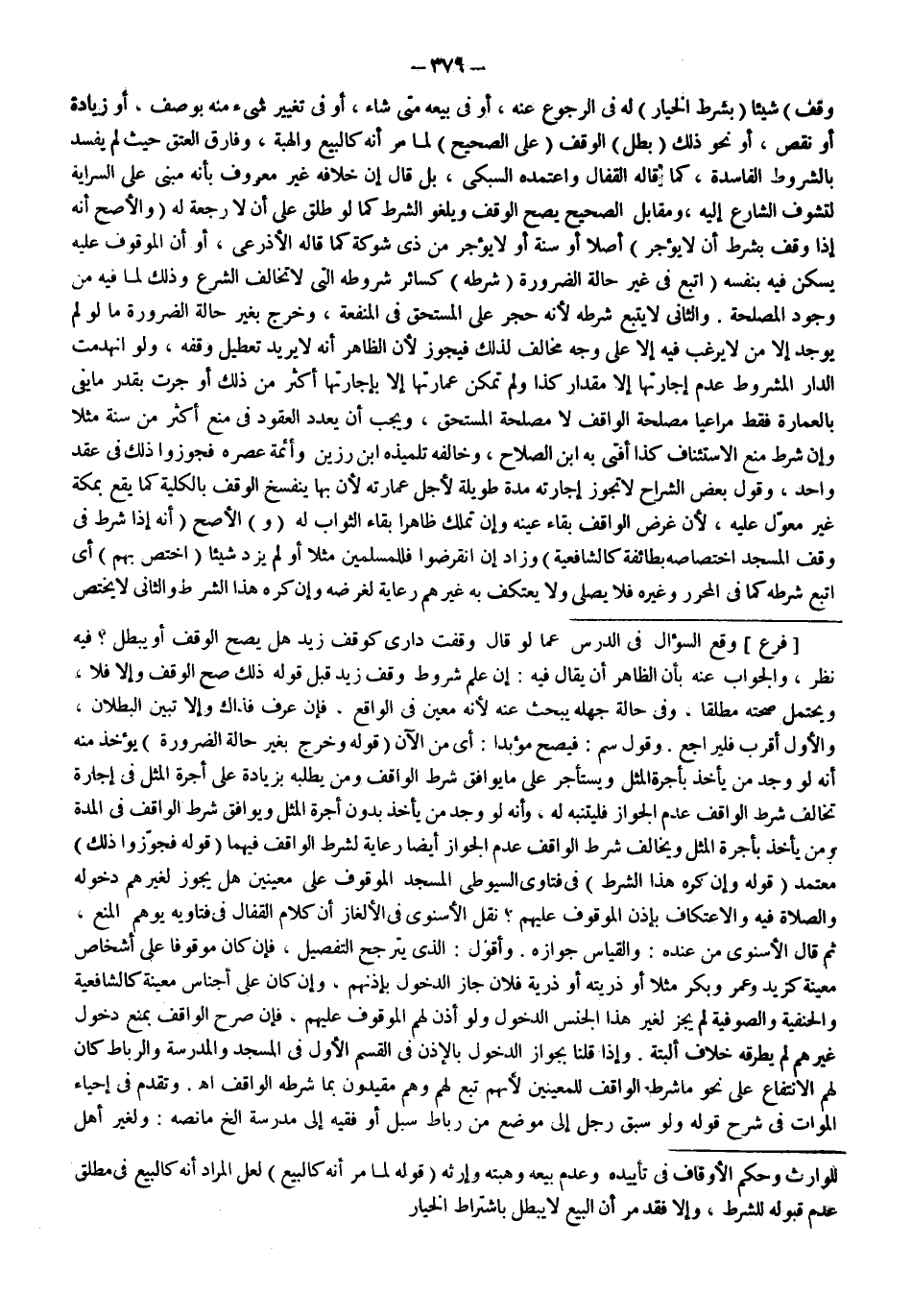ـــــــــــــــــــــــــــــSفَرْعٌ] وَقَعَ السُّؤَالُ فِي الدَّرْسِ عَمَّا لَوْ قَالَ وَقَفْت دَارِي كَوَقْفِ زَيْدٍ هَلْ يَصِحُّ الْوَقْفُ أَوْ يَبْطُلُ؟ فِيهِ نَظَرٌ، وَالْجَوَابُ عَنْهُ بِأَنَّ الظَّاهِرَ أَنْ يُقَالَ فِيهِ: إنْ عَلِمَ شُرُوطَ وَقْفِ زَيْدٍ قَبْلَ قَوْلِهِ ذَلِكَ صَحَّ الْوَقْفُ وَإِلَّا فَلَا، وَيَحْتَمِلُ صِحَّتَهُ مُطْلَقًا.