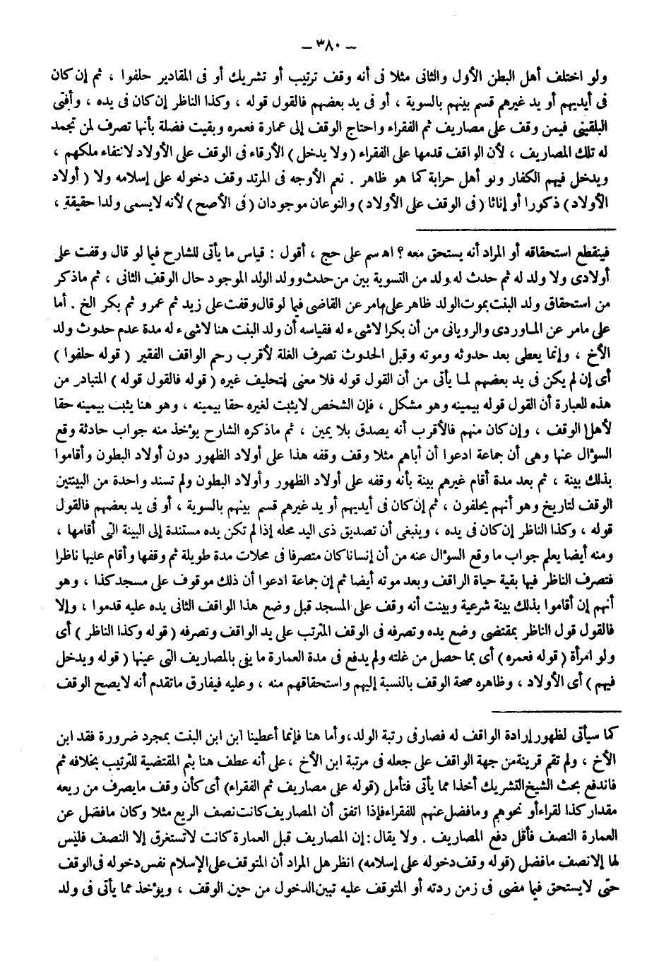 ـــــــــــــــــــــــــــــQكَمَا سَيَأْتِي لِظُهُورِ إرَادَةِ الْوَاقِفِ لَهُ فَصَارَ فِي رُتْبَةِ الْوَلَدِ، وَأَمَّا هُنَا فَإِنَّمَا أَعْطَيْنَا ابْنَ ابْنِ الْبِنْتِ بِمُجَرَّدِ ضَرُورَةِ فَقْدِ ابْنِ الْأَخِ، وَلَمْ تَقُمْ قَرِينَةٌ مِنْ جِهَةِ الْوَاقِفِ عَلَى جَعْلِهِ فِي مَرْتَبَةِ ابْنِ الْأَخِ، عَلَى أَنَّهُ عَطَفَ هُنَا بِثُمَّ الْمُقْتَضِيَةِ لِلتَّرْتِيبِ بِخِلَافِهِ ثَمَّ فَانْدَفَعَ بَحْثُ الشَّيْخِ التَّشْرِيكَ أَخْذًا مِمَّا يَأْتِي فَتَأَمَّلْ. (قَوْلُهُ: عَلَى مَصَارِيفَ ثُمَّ الْفُقَرَاءِ) أَيْ كَأَنْ وَقَفَ مَا يُصْرَفُ مِنْ رَيْعِهِ مِقْدَارُ كَذَا لِقُرَّاءٍ أَوْ نَحْوِهِمْ وَمَا فَضَلَ عَنْهُمْ لِلْفُقَرَاءِ فَإِذَا اتَّفَقَ أَنَّ الْمَصَارِيفَ كَانَتْ نِصْفَ الرُّبُعِ مَثَلًا وَكَانَ مَا فَضَلَ عَنْ الْعِمَارَةِ النِّصْفَ فَأَقَلَّ دَفَعَ الْمَصَارِيفَ.