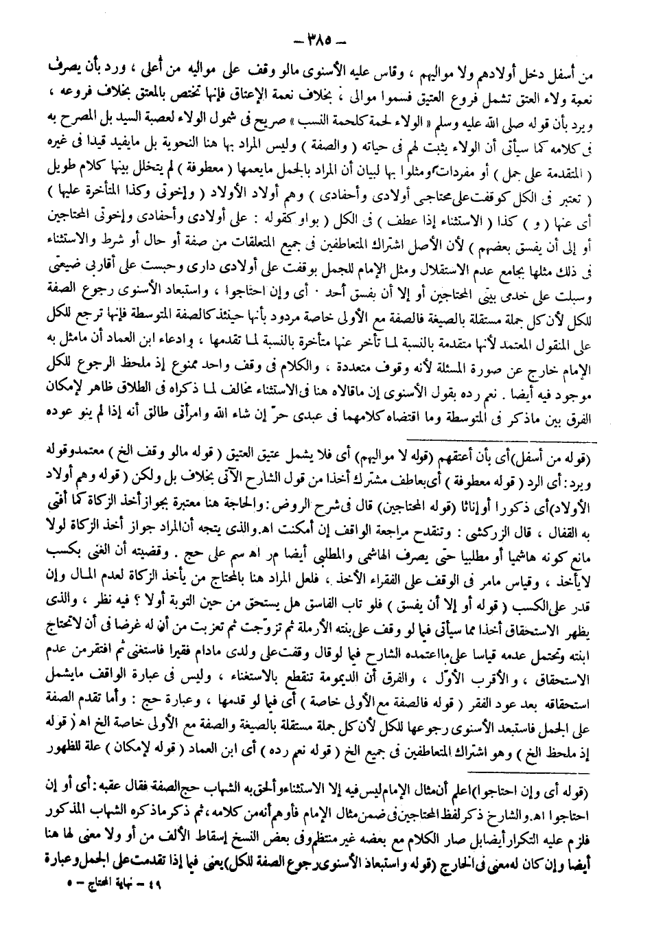مِنْ أَسْفَلَ دَخَلَ أَوْلَادُهُمْ وَمَوَالِيهِمْ، وَقَاسَ عَلَيْهِ الْإِسْنَوِيُّ مَا لَوْ وَقَفَ عَلَى مَوَالِيهِ مِنْ أَعْلَى، وَرُدَّ بِأَنْ يَصْرِفَ نِعْمَةَ وَلَاءِ الْعِتْقِ تَشْمَلُ فُرُوعَ الْعَتِيقِ فَسُمُّوا مَوَالِيَ، بِخِلَافِ نِعْمَةِ الْإِعْتَاقِ فَإِنَّهَا تَخْتَصُّ بِالْمُعْتَقِ بِخِلَافِ فُرُوعِهِ، وَيُرَدُّ بِأَنَّ قَوْلَهُ - صَلَّى اللَّهُ عَلَيْهِ وَسَلَّمَ - «الْوَلَاءُ لُحْمَةٌ كَلُحْمَةِ النَّسَبِ» صَرِيحٌ فِي شُمُولِ الْوَلَاءِ لِعَصَبَةِ السَّيِّدِ بَلْ الْمُصَرَّحُ بِهِ فِي كَلَامِهِ كَمَا سَيَأْتِي أَنَّ الْوَلَاءَ يَثْبُتُ لَهُمْ فِي حَيَاتِهِ.