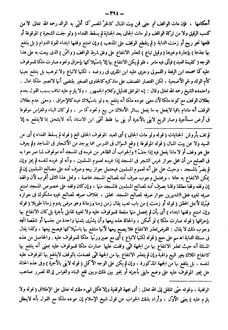 أَحْكَامِهَا، فَإِنْ مَاتَ الْوَاقِفُ ثُمَّ جَنَى فَمِنْ بَيْتِ الْمَالِ كَالْحُرِّ الْمُعْسِرِ كَمَا أَفْتَى بِهِ الْوَالِدُ - رَحِمَهُ اللَّهُ تَعَالَى - لَا مِنْ كَسْبِ الرَّقِيقِ وَلَا مِنْ تَرِكَةِ الْوَاقِفِ وَلَوْ مَاتَ الْجَانِي بَعْدَ الْجِنَايَةِ لَمْ يَسْقُطْ الْفِدَاءُ.