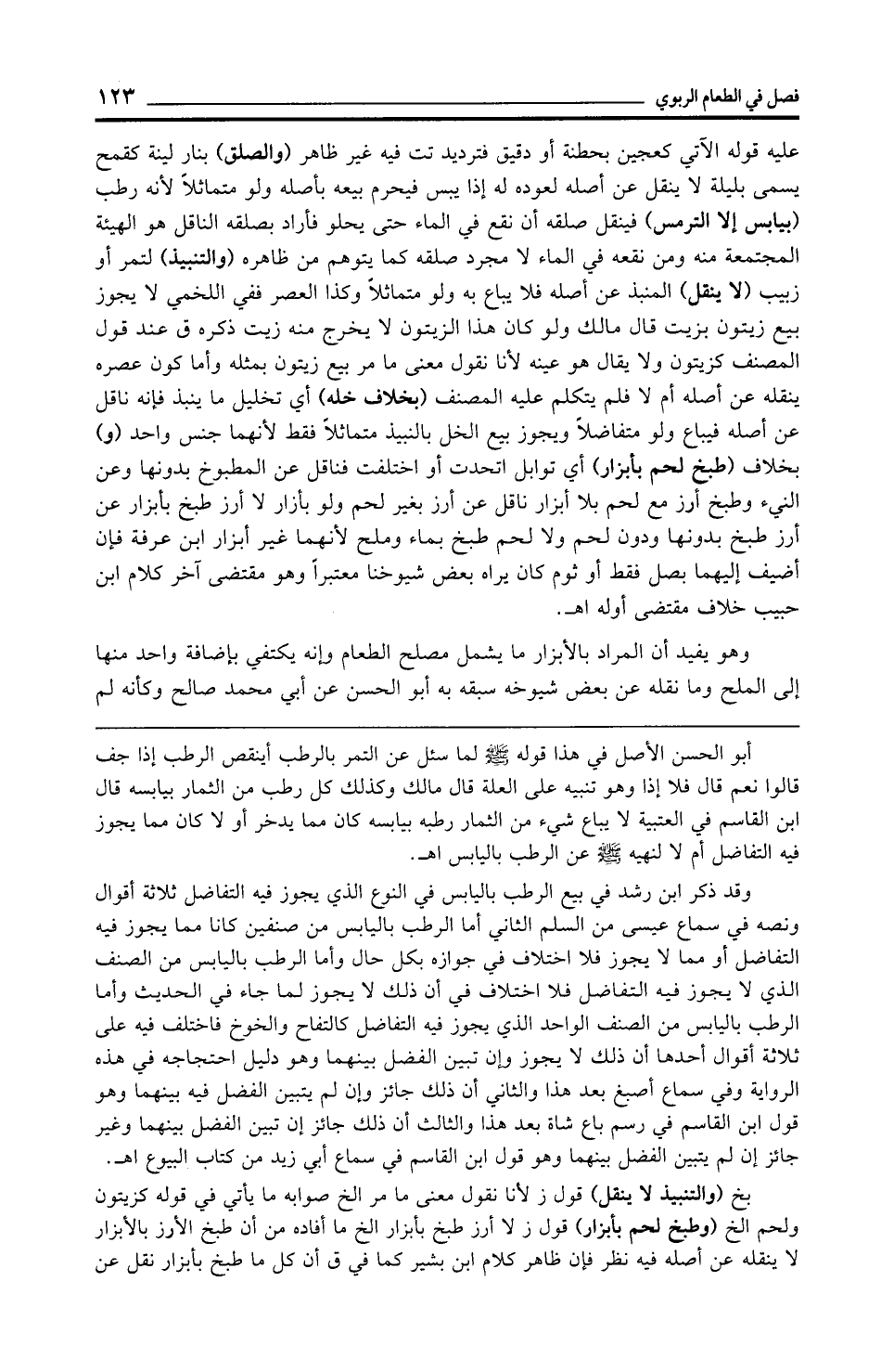 وهو يفيد أن المراد بالأبزار ما يشمل مصلح الطعام وإنه يكتفي بإضافة واحد منها إلى الملح وما نقله عن بعض شيوخه سبقه به أبو الحسن عن أبي محمَّد صالح وكأنه لم