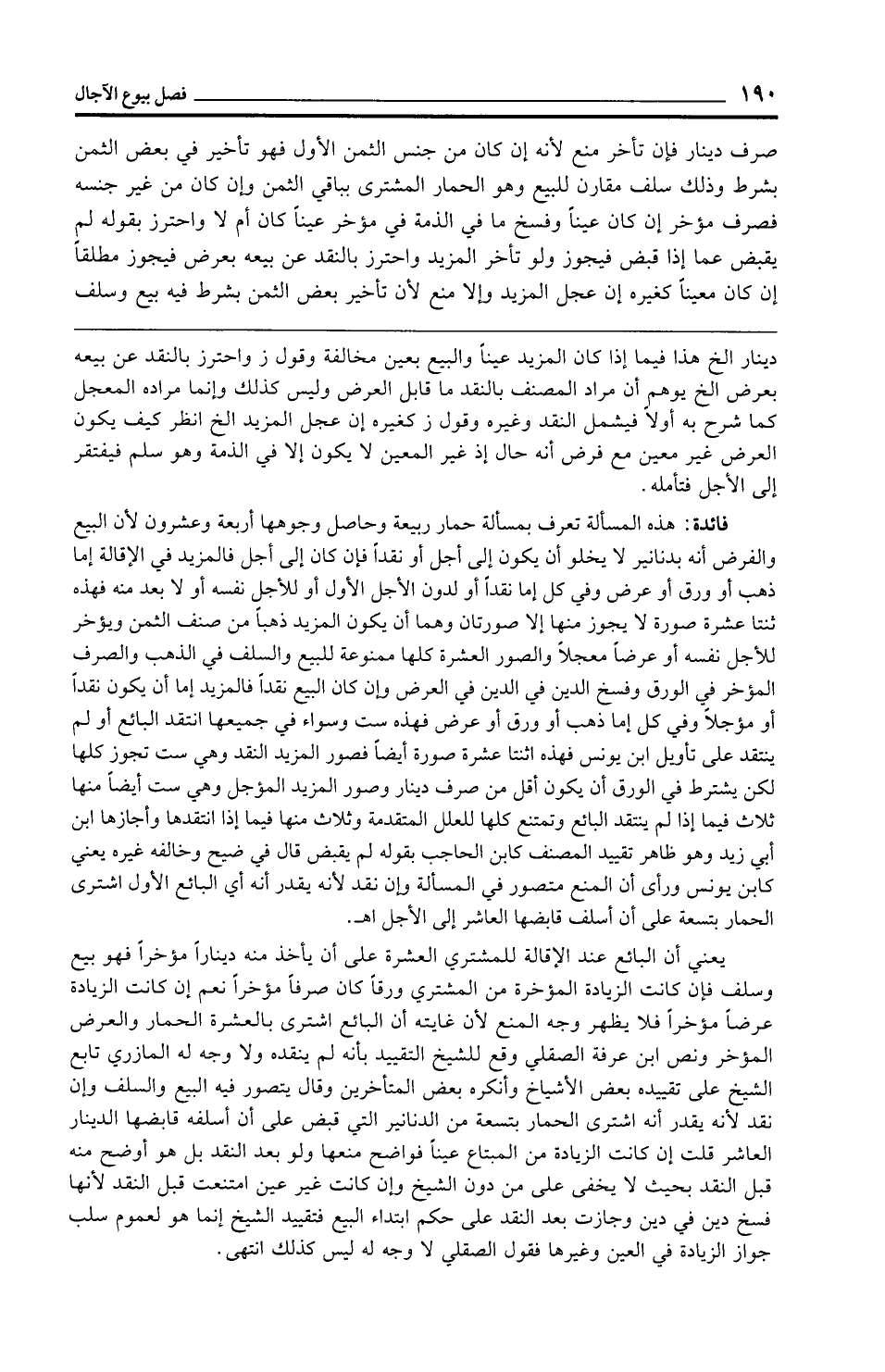 صرف دينار فإن تأخر منع لأنه إن كان من جنس الثمن الأول فهو تأخير في بعض الثمن بشرط وذلك سلف مقارن للبيع وهو الحمار المشتري بباقي الثمن وإن كان من غير جنسه فصرف مؤخر إن كان عينًا وفسخ ما في الذمة في مؤخر عينًا كان أم لا واحترز بقوله لم يقبض عما إذا قبض فيجوز ولو تأخر المزيد واحترز بالنقد عن بيعه بعرض فيجوز مطلقًا إن كان معينًا كغيره إن عجل المزيد وإلا منع لأن تأخير بعض الثمن بشرط فيه بيع وسلف