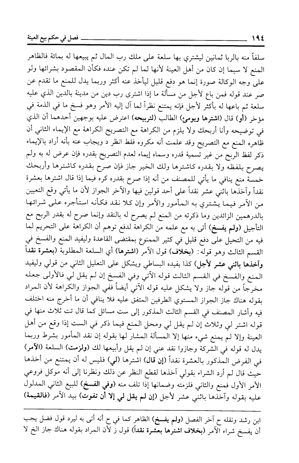 ابن رشد ونقله ح آخر الفصل (ولم يفسخ) الظاهر كما في ح أنه أتى به ليرد قول فضل يجب أن يفسخ شراء الآمر (بخلاف اشترها بعشرة نقدًا) قول ز لأن المراد بقوله هناك جاز الخ لا