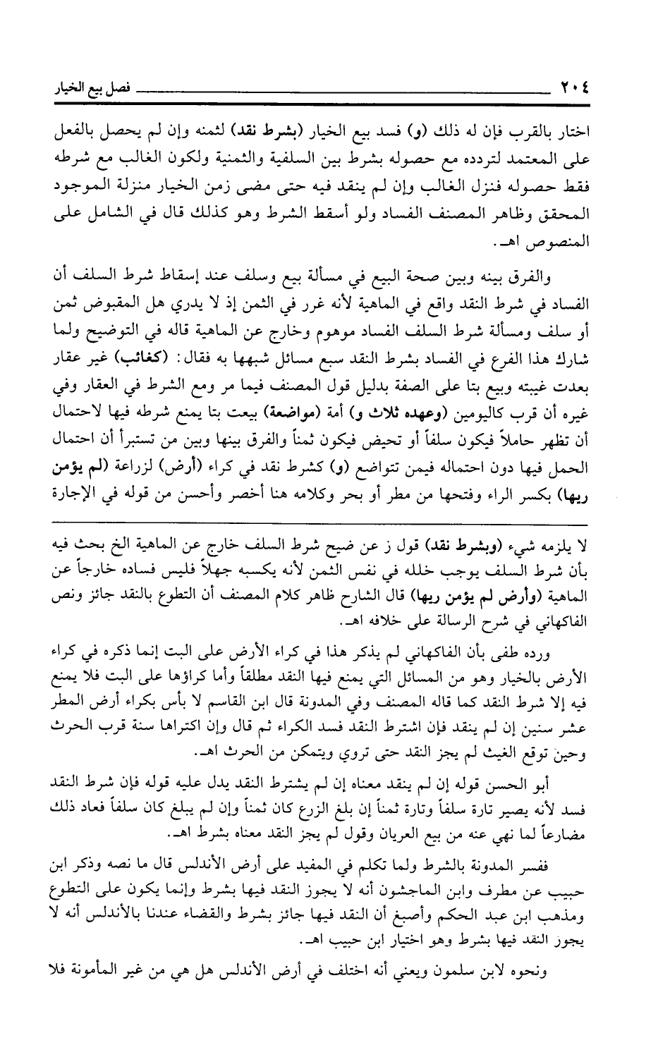 لا يلزمه شيء (وبشرط نقد) قول ز عن ضيح شرط السلف خارج عن الماهية الخ بحث فيه بأن شرط السلف يوجب خلله في نفس الثمن لأنه يكسبه جهلًا فليس فساده خارجًا عن الماهية (وأرض لم يؤمن ريها) قال الشارح ظاهر كلام المصنف أن التطوع بالنقد جائز ونص الفاكهاني في شرح الرسالة على خلافه اهـ.