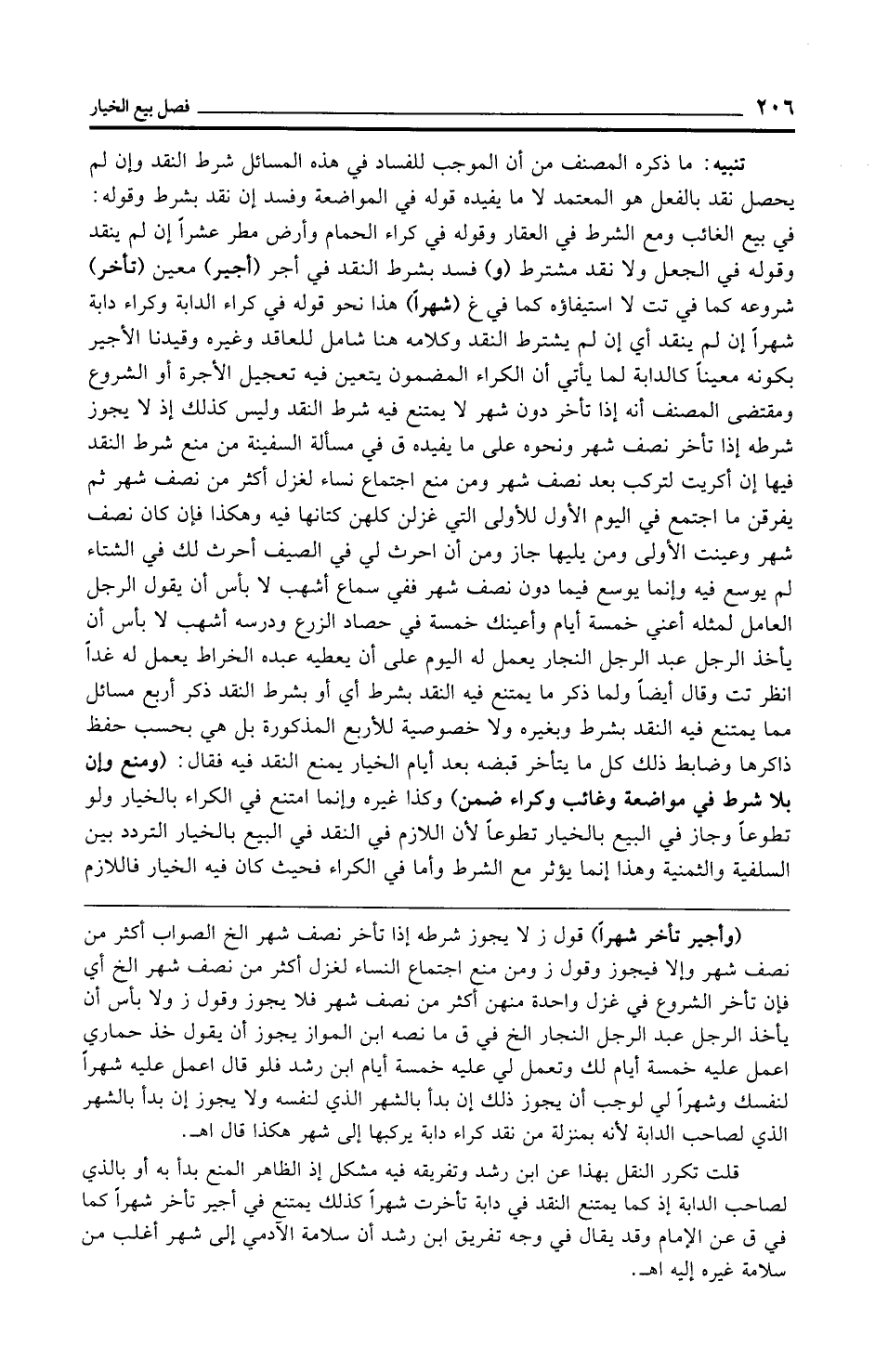 (وأجير تأخر شهرًا) قول ز لا يجوز شرطه إذا تأخر نصف شهر الخ الصواب أكثر من نصف شهر وإلا فيجوز وقول ز ومن منع اجتماع النساء لغزل أكثر من نصف شهر الخ أي فإن تأخر الشروع في غزل واحدة منهن أكثر من نصف شهر فلا يجوز وقول ز ولا بأس أن يأخذ الرجل عبد الرجل النجار الخ في ق ما نصه ابن المواز يجوز أن يقول خذ حماري اعمل عليه خمسة أيام لك وتعمل لي عليه خمسة أيام ابن رشد فلو قال اعمل عليه شهرًا لنفسك وشهرًا لي لوجب أن يجوز ذلك إن بدأ بالشهر الذي لنفسه ولا يجوز إن بدأ بالشهر الذي لصاحب الدابة لأنه بمنزلة من نقد كراء دابة يركبها إلى شهر هكذا قال اهـ.