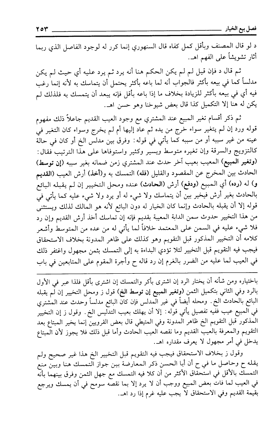 ثم قال د فإن قيل لم لم يكن الحكم هنا أنه يرد ثم يرد عليه أي حيث لم يكن مدلسًا كما في بيعه بأكثر فالجواب أنه لما باعه بأكثر يحتمل أن يتماسك به لأنه إنما رغب فيه أي في بيعه بأكثر للزيادة بخلاف ما إذا باعه بأقل فإنه يبعد أن يتمسك به فلذلك لم يكن له هنا إلا التكميل كذا قال بعض شيوخنا وهو حسن اهـ.