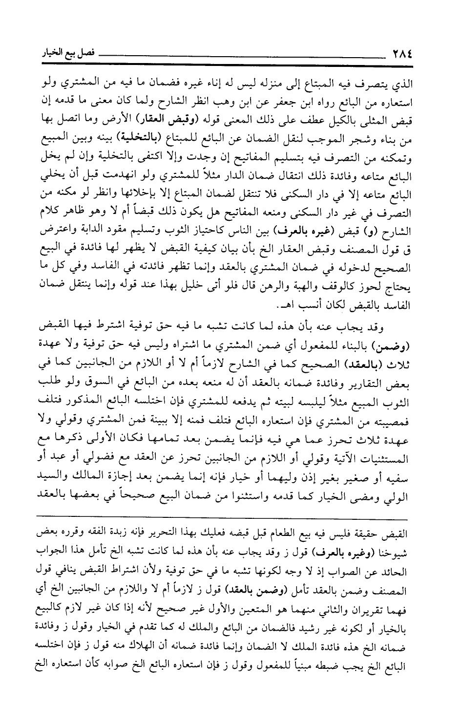 القبض حقيقة فليس فيه بيع الطعام قبل قبضه فعليك بهذا التحرير فإنه زبدة الفقه وقرره بعض شيوخنا (وغيره بالعرف) قول ز وقد يجاب عنه بأن هذه لما كانت تشبه الخ تأمل هذا الجواب الحائد عن الصواب إذ لا وجه لكونها تشبه ما في حق توفية ولأن اشتراط القبض ينافي قول المصنف وضمن بالعقد تأمل (وضمن بالعقد) قول ز لازمًا أم لا واللازم من الجانبين الخ أي فهما تقريران والثاني منهما هو المتعين والأول غير صحيح لأنه إذا كان غير لازم كالبيع بالخيار أو لكونه غير رشيد فالضمان من البائع والملك له كما تقدم في الخيار وقول ز وفائدة ضمانه الخ هذه فائدة الملك لا الضمان وإنما فائدة ضمانه أن الهلاك منه قول ز فإن اختلسه البائع الخ يجب ضبطه مبنيًّا للمفعول وقول ز فإن استعاره البائع الخ صوابه كأن استعاره الخ