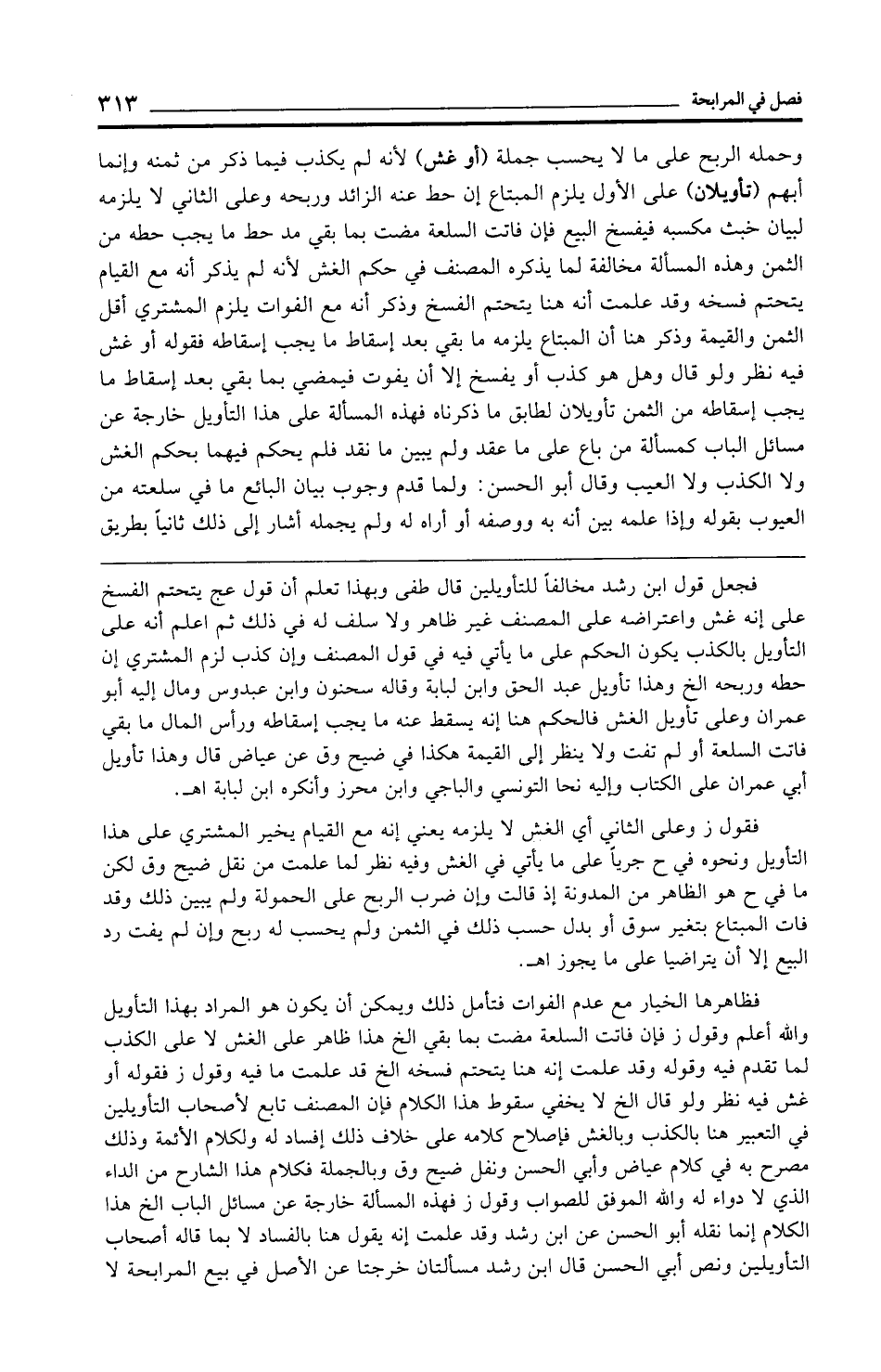 فظاهرها الخيار مع عدم الفوات فتأمل ذلك ويمكن أن يكون هو المراد بهذا التأويل والله أعلم وقول ز فإن فاتت السلعة مضت بما بقي الخ هذا ظاهر على الغش لا على الكذب لما تقدم فيه وقوله وقد علمت إنه هنا يتحتم فسخه الخ قد علمت ما فيه وقول ز فقوله أو غش فيه نظر ولو قال الخ لا يخفي سقوط هذا الكلام فإن المصنف تابع لأصحاب التأويلين في التعبير هنا بالكذب وبالغش فإصلاح كلامه على خلاف ذلك إفساد له ولكلام الأئمة وذلك مصرح به في كلام عياض وأبي الحسن ونفل ضيح وق وبالجملة فكلام هذا الشارح من الداء الذي لا دواء له والله الموفق للصواب وقول ز فهذه المسألة خارجة عن مسائل الباب الخ هذا الكلام إنما نقله أبو الحسن عن ابن رشد وقد علمت إنه يقول هنا بالفساد لا بما قاله أصحاب التأويلين ونص أبي الحسن قال ابن رشد مسألتان خرجتا عن الأصل في بيع المرابحة لا