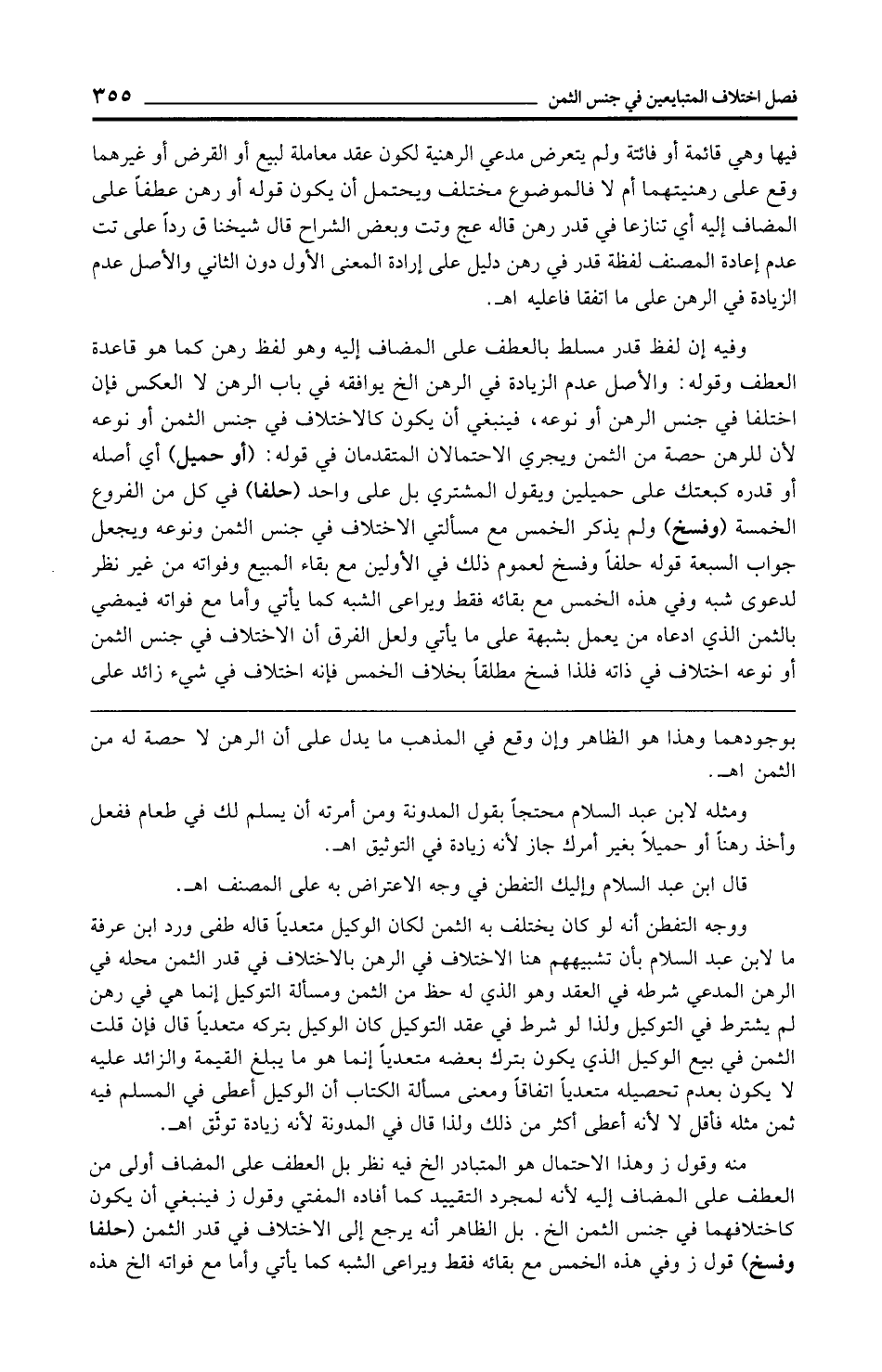 ووجه التفطن أنه لو كان يختلف به الثمن لكان الوكيل متعديًا قاله طفى ورد ابن عرفة ما لابن عبد السلام بأن تشبيههم هنا الاختلاف في الرهن بالاختلاف في قدر الثمن محله في الرهن المدعي شرطه في العقد وهو الذي له حظ من الثمن ومسألة التوكيل إنما هي في رهن لم يشترط في التوكيل ولذا لو شرط في عقد التوكيل كان الوكيل بتركه متعديًا قال فإن قلت الثمن في بيع الوكيل الذي يكون بترك بعضه متعديًا إنما هو ما يبلغ القيمة والزائد عليه لا يكون بعدم تحصيله متعديًا اتفاقًا ومعنى مسألة الكتاب أن الوكيل أعطى في المسلم فيه ثمن مثله فأقل لا لأنه أعطى أكثر من ذلك ولذا قال في المدونة لأنه زيادة توثق اهـ.