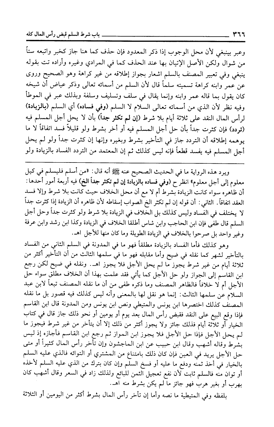 ويرد هذه الرواية ما في الحديث الصحيح عنه - صلى الله عليه وسلم - أنه قال: "من أسلم فليسلم في كيل معلوم إلى أجل معلوم" انظر ح (وفي فساده بالزيادة إن لم تكثر جدًّا الخ) فيه أربعة أمور أحدها: أن ظاهره سواء كانت الزيادة بشرط أم لا مع أن محل الخلاف حيث كانت بلا شرط وإلا فسد العقد اتفاقًا. الثاني: أن قوله إن لم تكثر الخ الصواب إسقاطه لأن ظاهره أن الزيادة إذا كثرت جدًّا لا يخلف في الفساد وليس كذلك بل الخلاف في الزيادة بلا شرط ولو كثرت جدًّا وحل أجل السلم قال طفى فإن ابن الحاجب وابن شاس أطلقا الخلاف في الزيادة وكذا ابن رشد وابن عرفة وغير واحد بل صرحوا بالخلاف في الزيادة الطويلة وما كان منها للأجل اهـ.