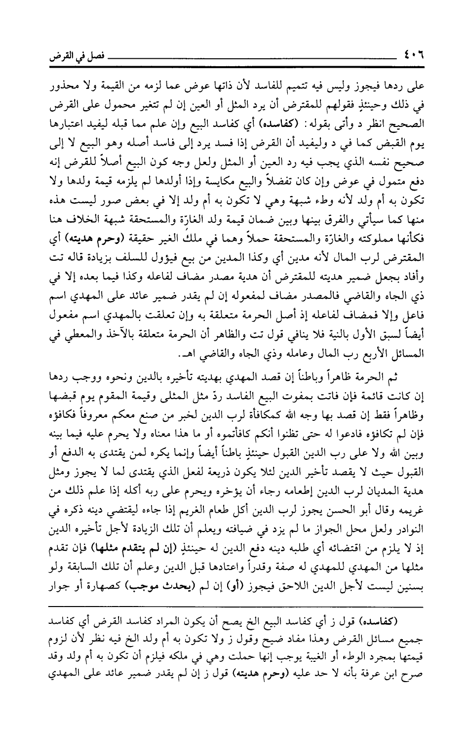 (كفاسده) قول ز أي كفاسد البيع الخ يصح أن يكون المراد كفاسد القرض أي كفاسد جميع مسائل القرض وهذا مفاد ضيح وقول ز ولا تكون به أم ولد الخ فيه نظر لأن لزوم قيمتها بمجرد الوطء أو الغيبة يوجب إنها حملت وهي في ملكه فيلزم أن تكون به أم ولد وقد صرح ابن عرفة بأنه لا حد عليه (وحرم هديته) قول ز إن لم يقدر ضمير عائد على المهدي