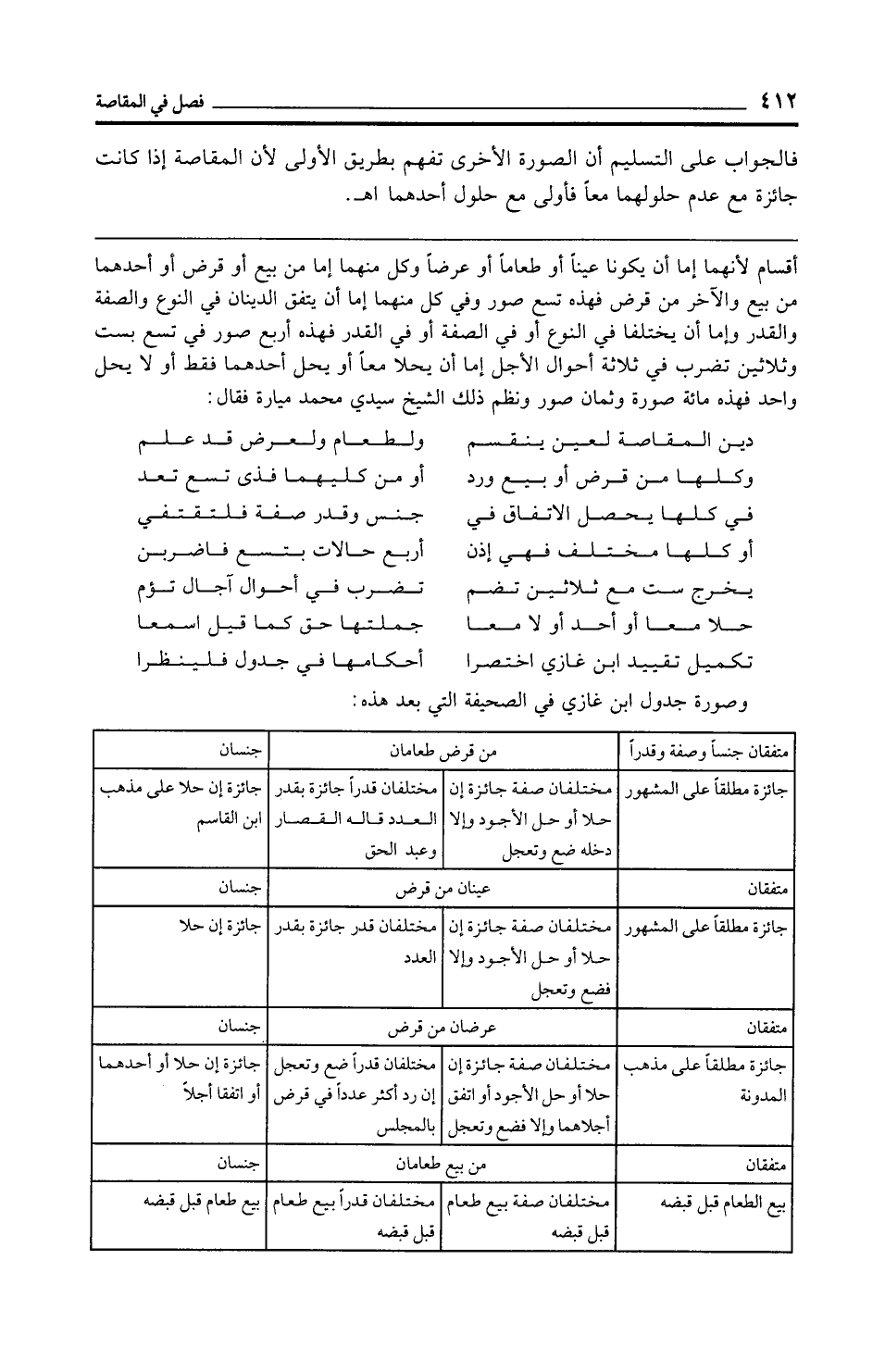 دين المقاصة لعين ينقسم ... ولطعام ولعرض قد علم