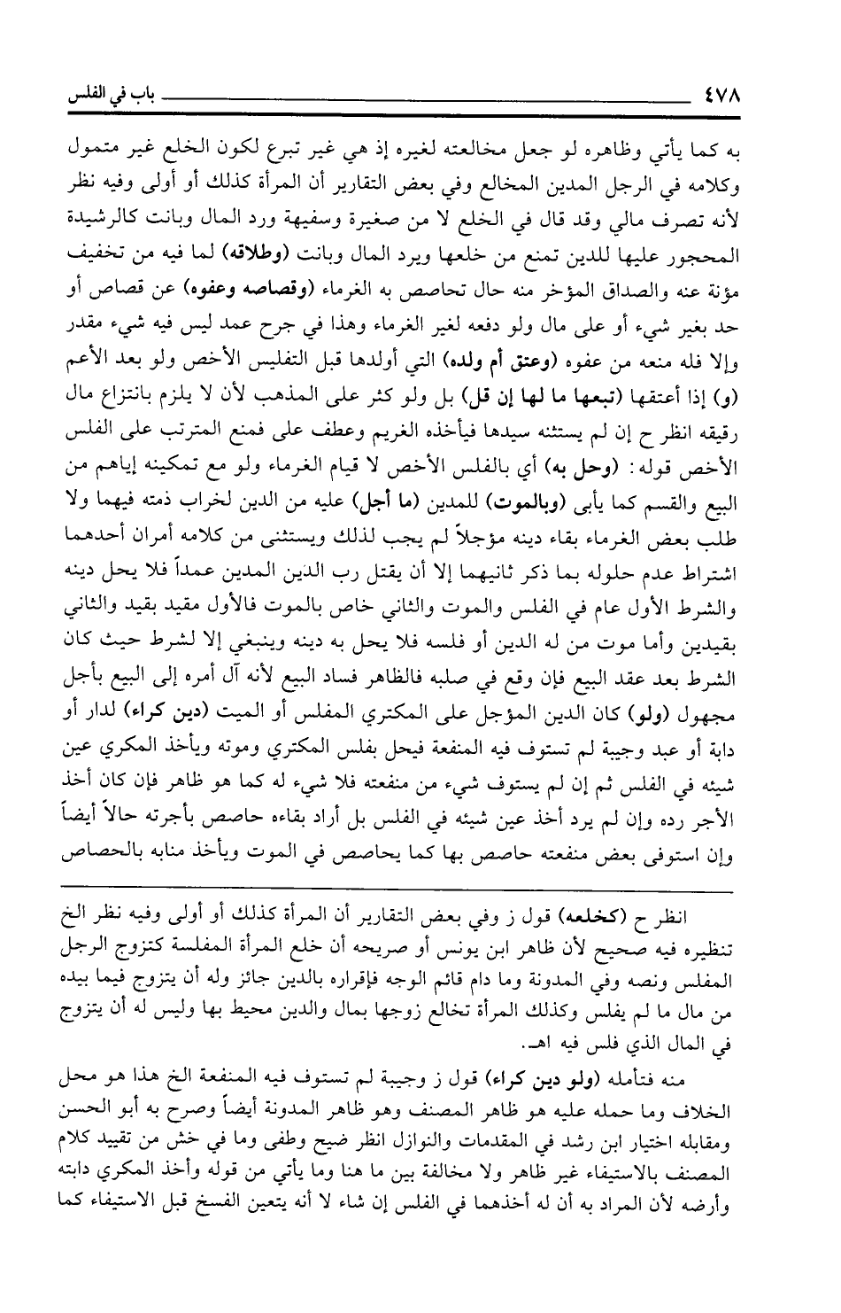 انظر ح (كخلعه) قول ز وفي بعض التقارير أن المرأة كذلك أو أولى وفيه نظر الخ تنظيره فيه صحيح لأن ظاهر ابن يونس أو صريحه أن خلع المرأة المفلسة كتزوج الرجل المفلس ونصه وفي المدونة وما دام قائم الوجه فإقراره بالدين جائز وله أن يتزوج فيما بيده من مال ما لم يفلس وكذلك المرأة تخالع زوجها بمال والدين محيط بها وليس له أن يتزوج في المال الذي فلس فيه اهـ.