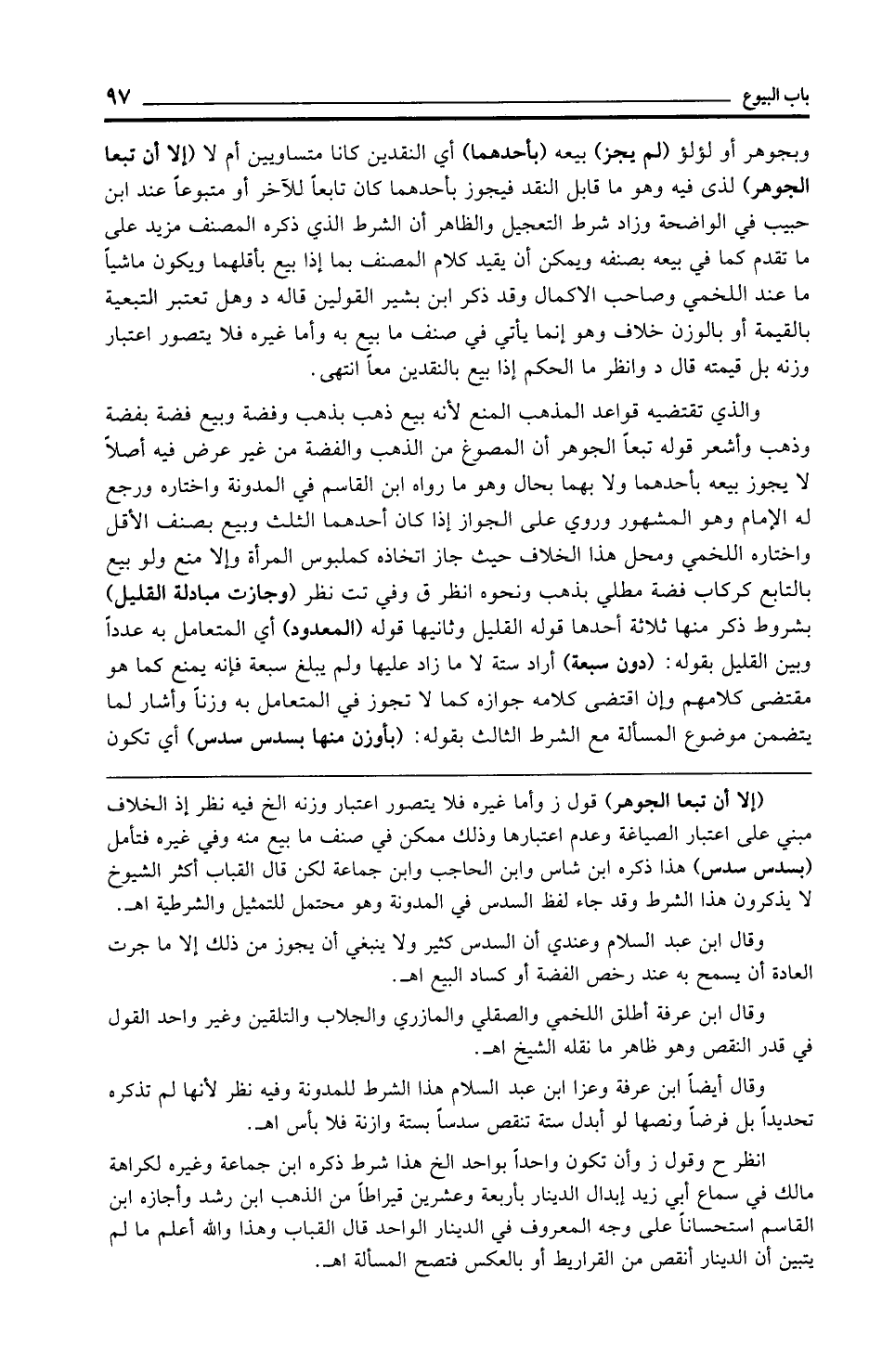 وقال أيضًا ابن عرفة وعزا ابن عبد السلام هذا الشرط للمدونة وفيه نظر لأنها لم تذكره تحديدًا بل فرضًا ونصها لو أبدل ستة تنقص سدسًا بستة وازنة فلا بأس اهـ.