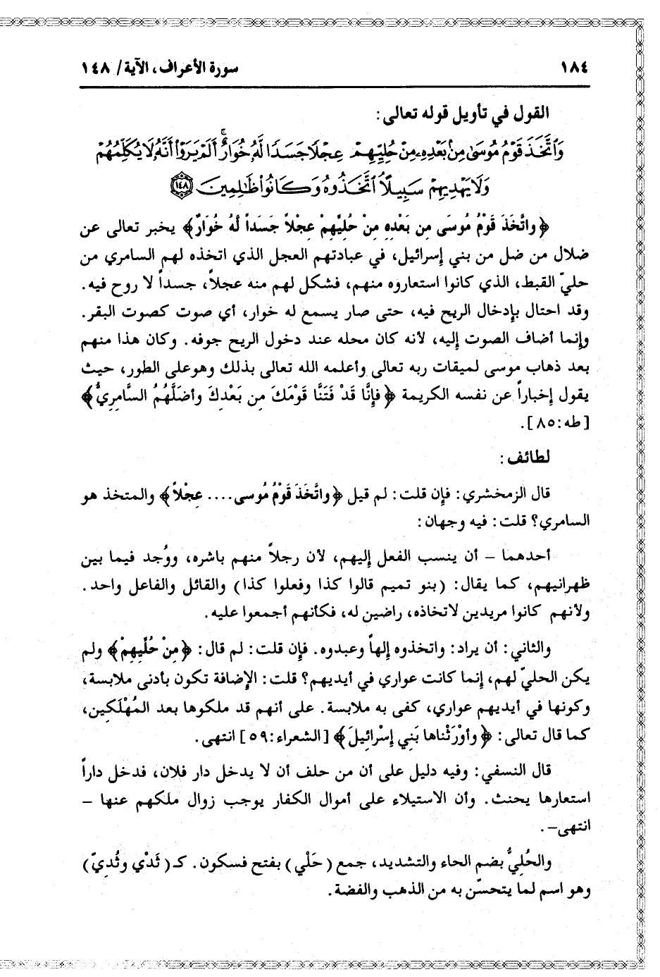القول في تأويل قوله تعالى: [سورة الأعراف (7) : آية 148]