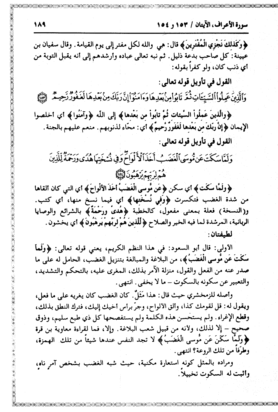 وَلَمَّا سَكَتَ عَنْ مُوسَى الْغَضَبُ أَخَذَ الْأَلْواحَ وَفِي نُسْخَتِها هُدىً وَرَحْمَةٌ لِلَّذِينَ هُمْ لِرَبِّهِمْ يَرْهَبُونَ (154)