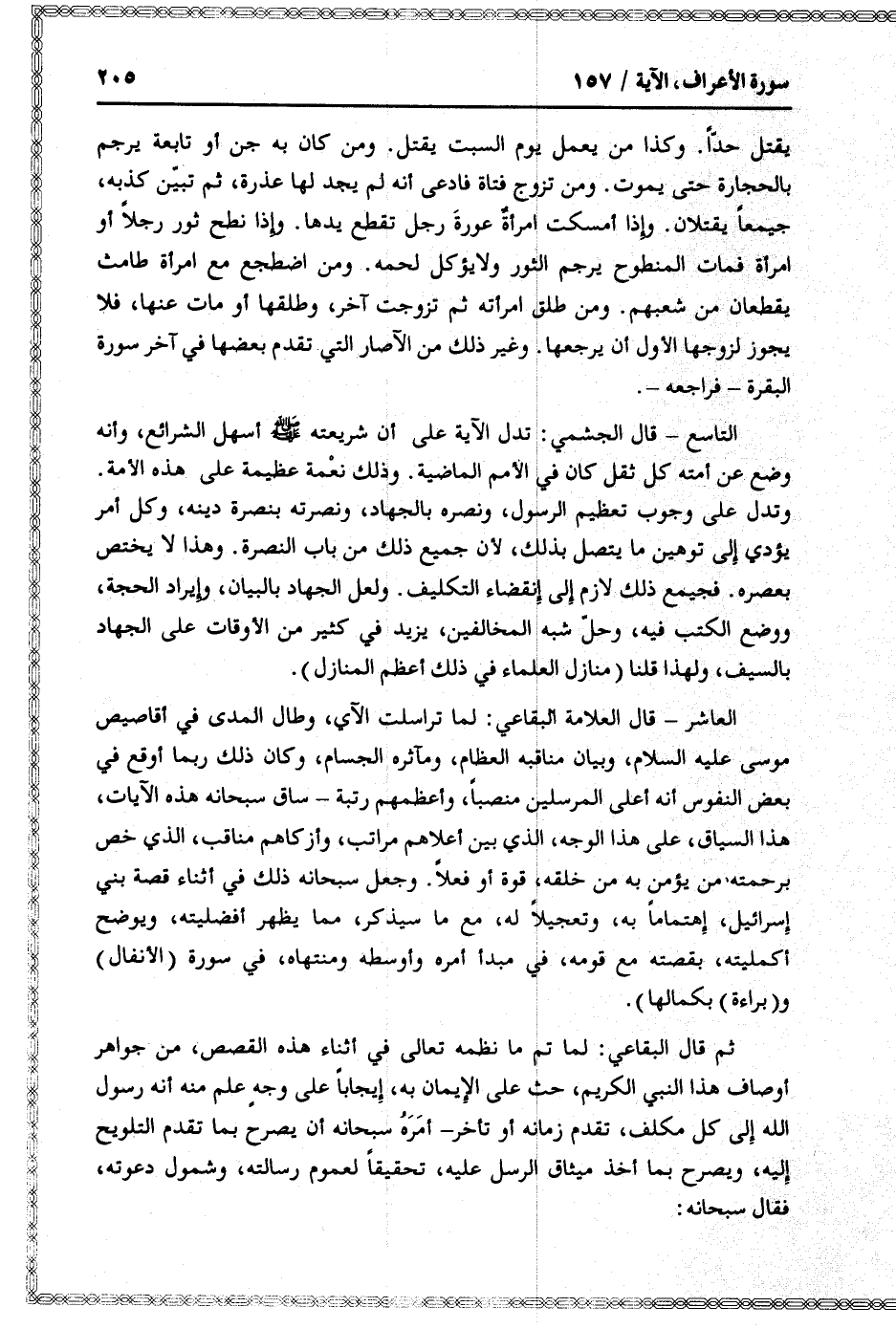 التاسع- قال الجشمي: تدل الآية على أن شريعته صلّى الله عليه وسلّم أسهل الشرائع، وأنه وضع عن أمته كل ثقل كان في الأمم الماضية. وذلك نعمة عظيمة على هذه الأمة.