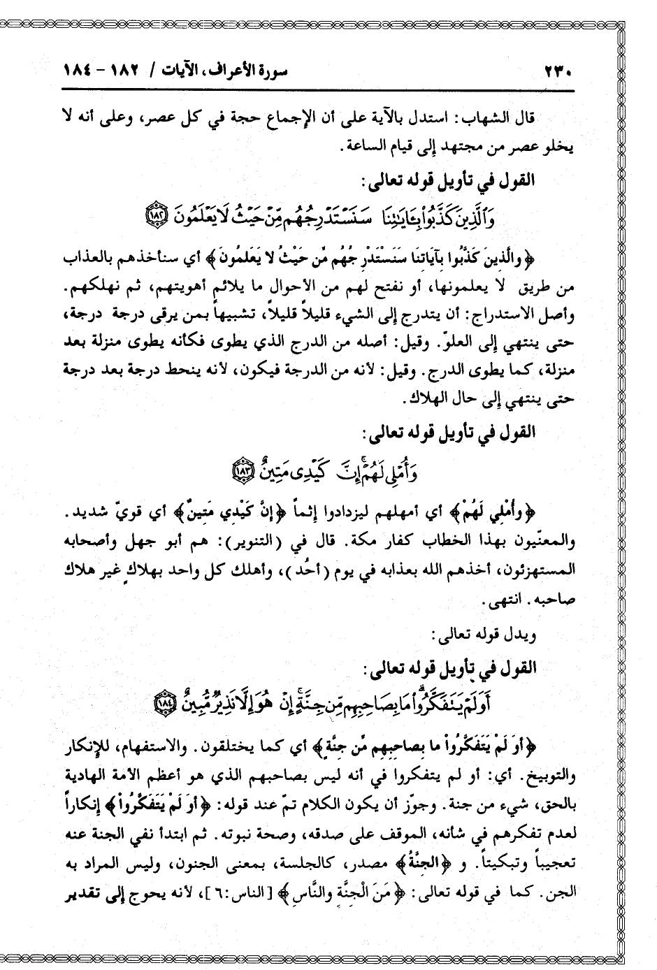 القول في تأويل قوله تعالى: [سورة الأعراف (7) : آية 184]