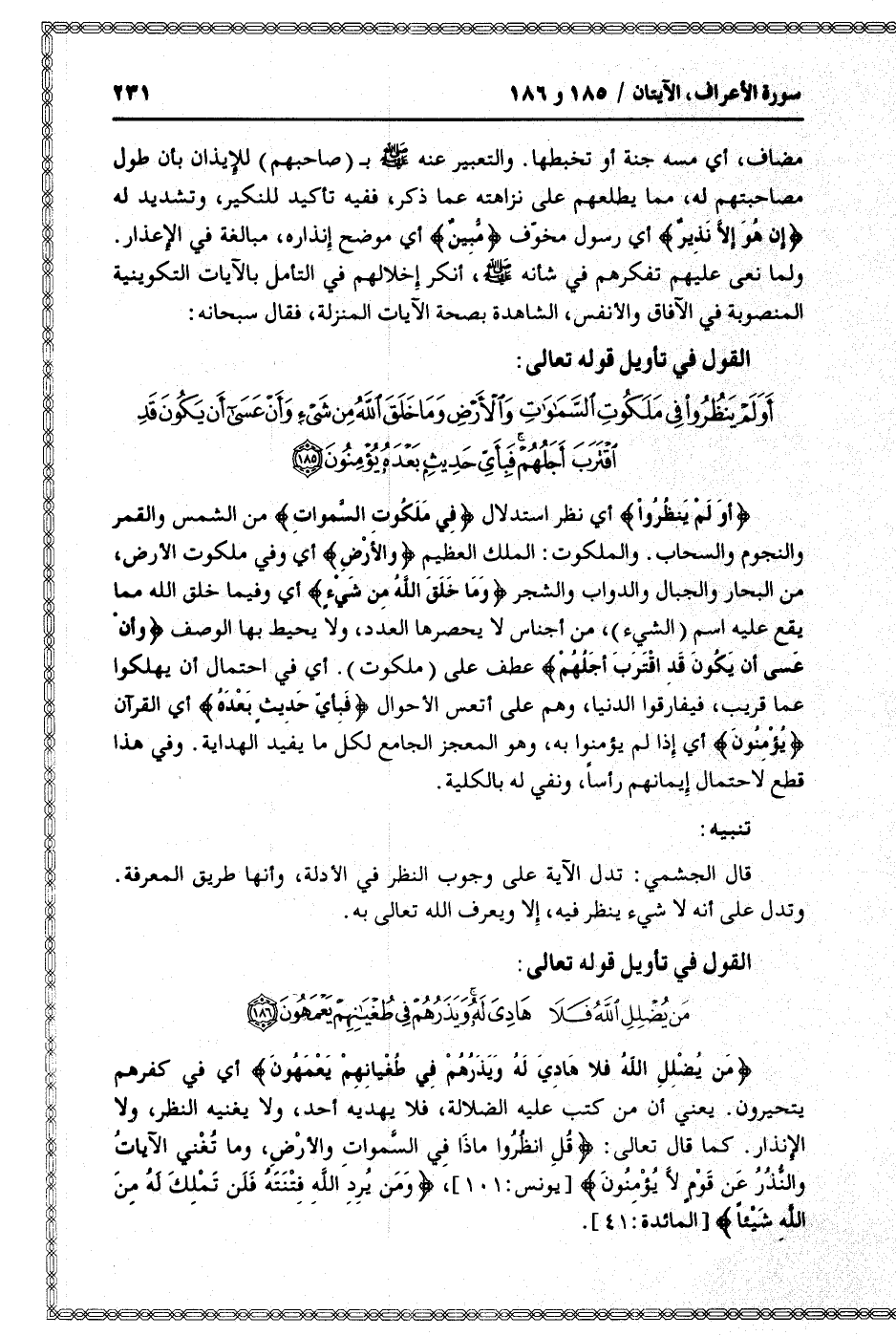 أَوَلَمْ يَنْظُرُوا فِي مَلَكُوتِ السَّماواتِ وَالْأَرْضِ وَما خَلَقَ اللَّهُ مِنْ شَيْءٍ وَأَنْ عَسى أَنْ يَكُونَ قَدِ اقْتَرَبَ أَجَلُهُمْ فَبِأَيِّ حَدِيثٍ بَعْدَهُ يُؤْمِنُونَ (185)