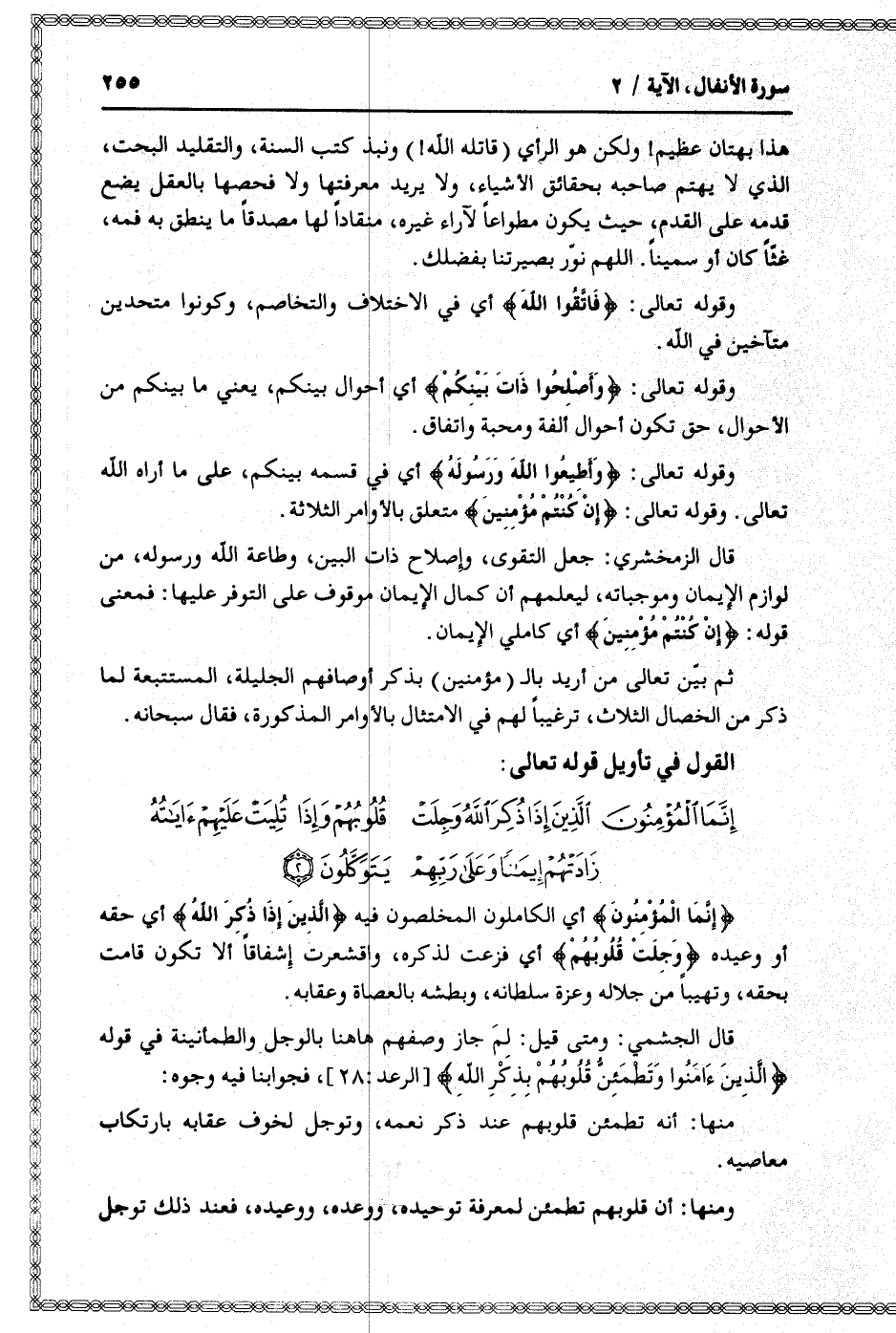 إِنَّمَا الْمُؤْمِنُونَ الَّذِينَ إِذا ذُكِرَ اللَّهُ وَجِلَتْ قُلُوبُهُمْ وَإِذا تُلِيَتْ عَلَيْهِمْ آياتُهُ زادَتْهُمْ إِيماناً وَعَلى رَبِّهِمْ يَتَوَكَّلُونَ (2)