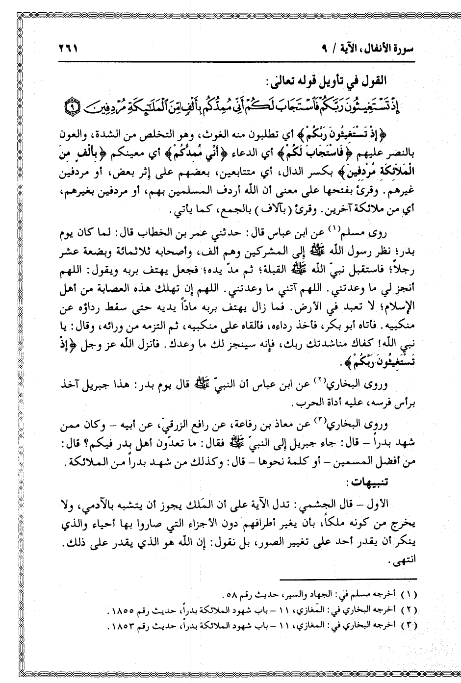 (3) أخرجه البخاري في: المغازي، 11- باب شهود الملائكة بدرا، حديث رقم 1853.